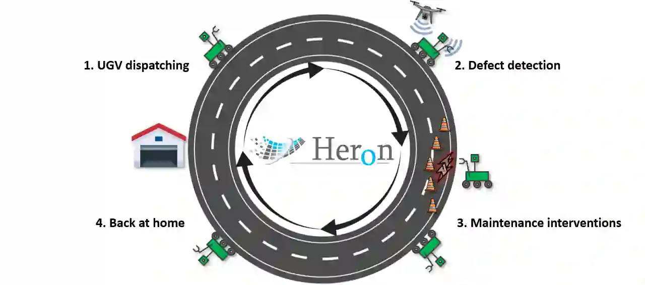 翻译:道路是经济发展和增长的关键,提供教育、保健和就业机会; 因此,道路的维修、维修和升级对道路使用者的健康和安全以及运行良好和繁荣的现代经济至关重要; 欧盟资助的HERON项目将开发一个综合自动化系统,以充分维护道路基础设施; 反过来,这将减少事故,降低维护费用,提高道路网络能力和效率; 为了协调维修工程,该项目将设计一个自主的地面机器人车,由自主无人驾驶飞机提供支持; 除了人工智能工具包外,还将使用3D绘图传感器和扫描仪,帮助协调道路维护和工作流程的升级。