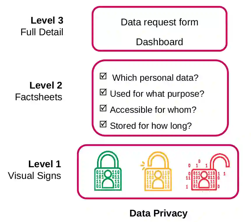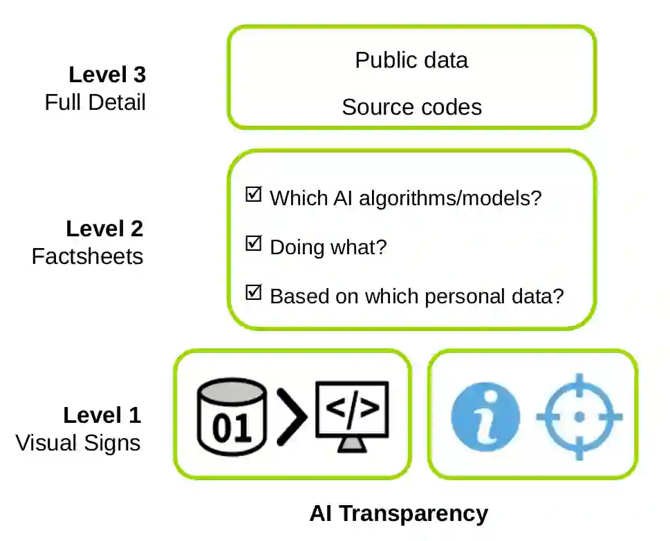 翻译:今天,人工智能(AI)对数十亿人的日常生活有着直接影响。由于适用于金融、卫生、安全和广告等部门,AI为世界上一些最大的公司和研究机构提供了燃料。在不远的将来,其影响似乎难以预测或约束。与所有这些力量相比,社会仍然大都不了解今天AI的能力和标准做法。为了解决这种不平衡,改善人与AI系统之间的当前互动,我们提议在向公众开放的任何AI系统上实施一个透明度计划。该计划基于两个支柱:数据隐私和AI透明。第一个支柱承认数据与AI的相关性,并得到GDPR的支持。第二个支柱考虑AI透明度目前不受管制的方面:AI的能力、宗旨和来源。我们根据道德原则设计这一支柱。我们对这两个支柱中的每一个支柱都界定了一个三级的展示。第一个层面基于视觉信号,受交通标志的启发,管理人与汽车之间的互动,并设计为快速和普遍的可解释性设计。第二层次使用概况介绍,提供有限的细节。最后一个层面提供所有可用信息,并得到GDPR的支持。第二个层面提供获取所有信息的渠道。第二个层面是目前不受管制的信息:AI能力、目的和源。我们根据道德原则设计设计一个面向用户的软件的系统设计设计,然后详细确定一个软件整合的软件整合。