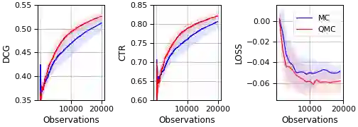 翻译:Plackett-Luce(Plackett-Luce)(Plackett-Luce)(PL)模式在学习到排名(LTR)方面无处不在,因为它为抽样排名列表提供了一个有用和直觉的概率模型。反事实离线评价和优化排名指标对于使用LTR方法的生产至关重要。在采用Plcl模式时,需要计算模型的预期值。这两项任务通常通过Monte-Carlo(MC)抽样方法进行,因为要排名的项目数量组合缩放使得其分析计算难以进行。尽管最近通过Gumberl 最高K 骗术在提高取样过程的计算效率方面取得了进展,但MC的估计可能存在很大差异。我们开发了一种新颖的方法,通过将 Gumbel 顶级诀窍与准Monte Carlo(QMC) 取样方法相结合,一种成熟的减少差异的技术,从而产生出更高效的PLPLS模型期望值的样本。我们用亚马孙音乐和Yahoo 学习到 挑战中真实世界建议数据来说明我们的调查结果。