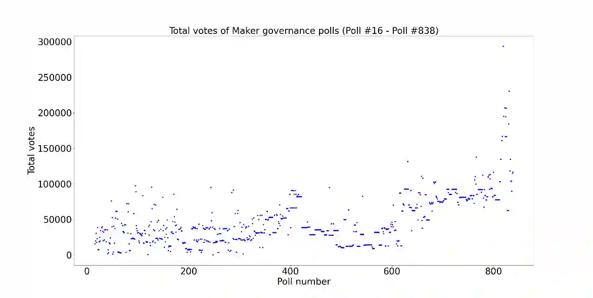 翻译:中央集权自治组织(DAO)通过块链提供权力下放的治理解决方案,即决策过程依赖于连锁投票并遵循多数人统治。本文以MakerDAO为重点,在对投票历史应用集群算法后,我们发现五个选民联盟。 主导选民联盟的出现是DAO集中治理的信号,选民联盟对Maker协议产生了复杂的影响,而MakerDAO则管理该协议。 本文提供了DAO多党民主化的经验证据,并进一步推动了当前关于权力下放治理是否可能的辩论。