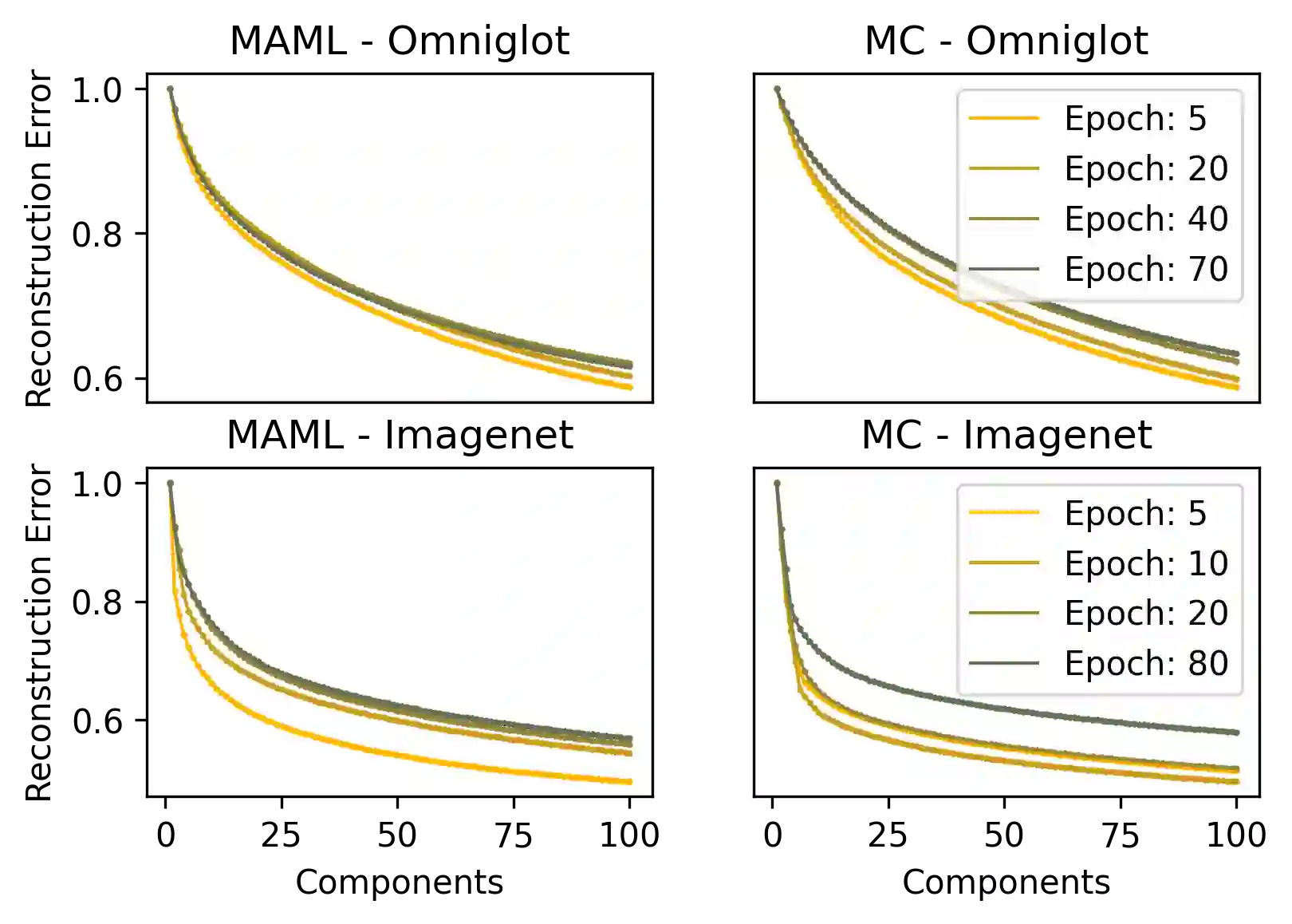 翻译:在这项工作中,我们分析了基于梯度的元数据学习方法(GBML)的适应后参数的分布情况。先前的工作注意到,就图像分类而言,这种调整只发生在网络的最后一层。我们提出了更为普遍的概念,即参数是在与任务-空间相同的一个低维/emph{subspace上更新的,并表明这也具有回归性。此外,诱导的子空间结构提供了一种方法,用以估计共同的微小学习数据集任务空间的内在层面。