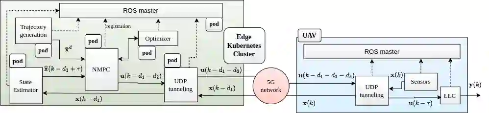 翻译:随着电磁计算等技术的出现,远程计算应用的地平线已经从多层面角度扩大了。自动无人驾驶航空飞行器(UAV)飞行任务是利用远程计算来催化其性能的重要应用。然而,将计算复杂性卸载到远程系统会增加该系统的潜伏。虽然5G网络网络等技术最大限度地减少通信延迟,但悬浮对无人驾驶飞行器控制的影响是不可避免的,并可能破坏系统的稳定。因此,必须考虑系统的延误,并在控制设计中补偿这些延误。因此,我们提议建立一个由5G网络、PACED-5G(使用Drones超过5G的电磁带预先自动控制)启用的基于Edge的新型预测控制结构。在拟议的控制结构中,我们设计了一个国家估计器,根据对时间变化延迟的现有知识来估计当前状态,设计了一个用于UAV跟踪参考轨迹的模型预测控制器(MPC),同时避免障碍,并提供界面,用于将高层任务卸载在UDAV系统上的两个测试案例。