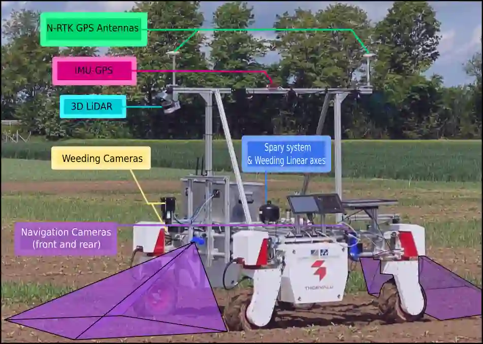 翻译:从作物监测到杂草管理和肥料应用等每一项任务都离不开农地机器人自主导航,从作物监测到杂草管理和化肥应用都是必要的。但是,许多现行方法都依赖精确的全球定位系统,这种技术费用昂贵,而且容易失败(例如,由于覆盖面不足)。因此,通过能够解释其环境的传感器(例如照相机)进行导航对于实现农业自主目标十分重要。在本文中,我们引入了一个纯粹基于愿景的导航计划,它能够可靠地引导机器人通过行块田。除了任何全球本地化或绘图之外,这种方法能够准确跟踪作物行和行之间开关,但只能使用机上摄像机。在新型作物行探测和新型作物行开关技术的帮助下,我们的导航计划可以部署在五大领域,在不同增长阶段使用不同型的树冠。我们利用农业机器人平台(BonnBot-I)在各种污染条件下对五个不同领域的导航方法进行了广泛的测试。我们的评估显示,我们在五个不同作物场上实现了3.82厘米的导航精确度。