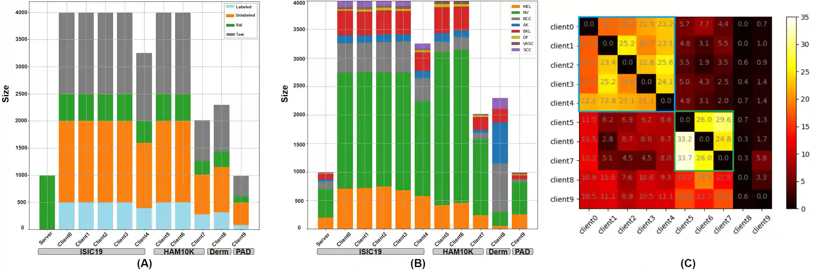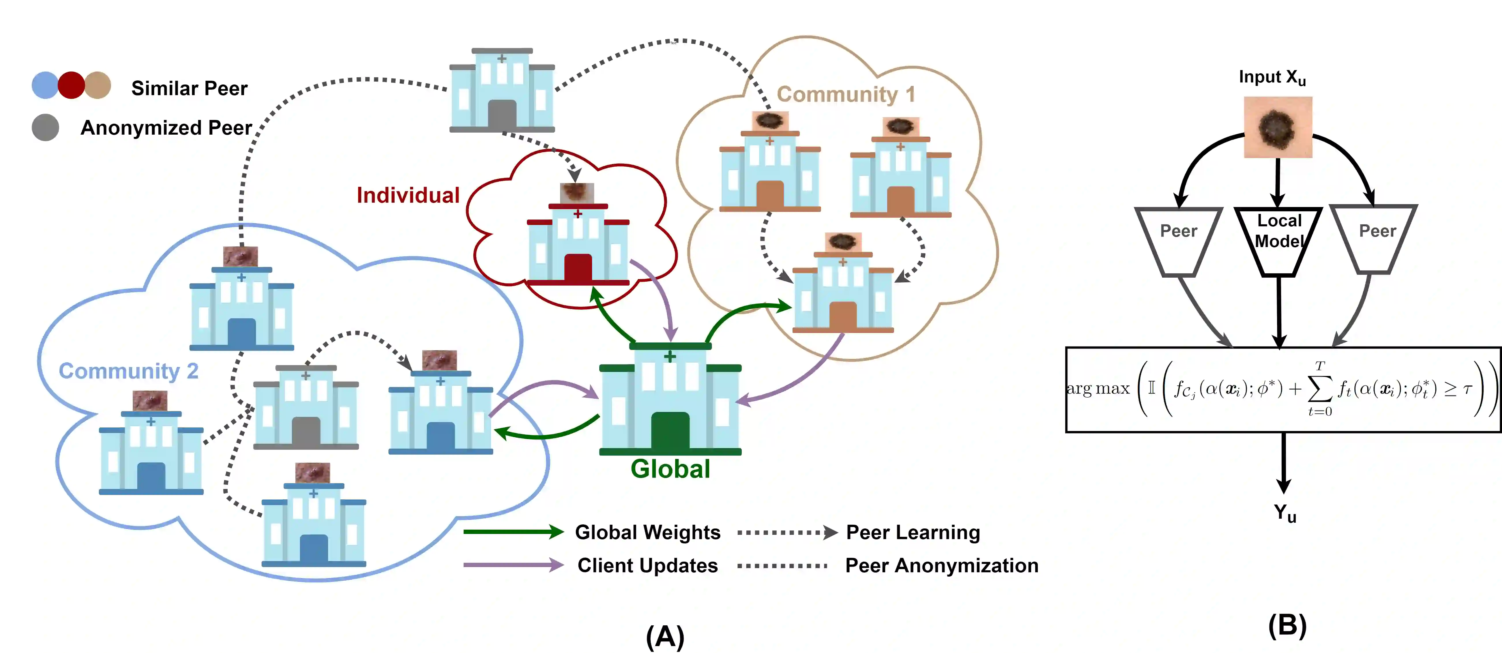 翻译:皮肤癌是全世界最致命的癌症之一。 然而,可以通过早期检测来降低癌症。 最近的深层学习方法已经显示了皮肤癌分类方面的皮肤病学水平性能。 然而,这一成功需要大量集中数据,而这些数据往往是没有的。 最近还引入了联邦学习,以在保密的分布式中培训机器学习模式,要求客户提供附加说明数据,通常费用昂贵,且在医疗领域尤其如此。 为此,我们提出了FedPerl, 这是一种半监督的联合会式学习方法,利用社会科学的同行学习,以及从委员会机器中平均从委员会机器中获得的共性学习,建设社区,鼓励其成员相互学习,从而产生更准确的假标签。我们还建议将同行匿名化技术作为FedPerl的核心内容。 PA保护隐私,降低通信成本,同时保持不增加复杂性。 我们验证了我们从4个公开数据集收集的38 000个皮肤病素图像的方法。 FedPerl实现在基线和州-P- SS- 18 客户的敏感度上更高的业绩,分别显示为15.8 % 。
