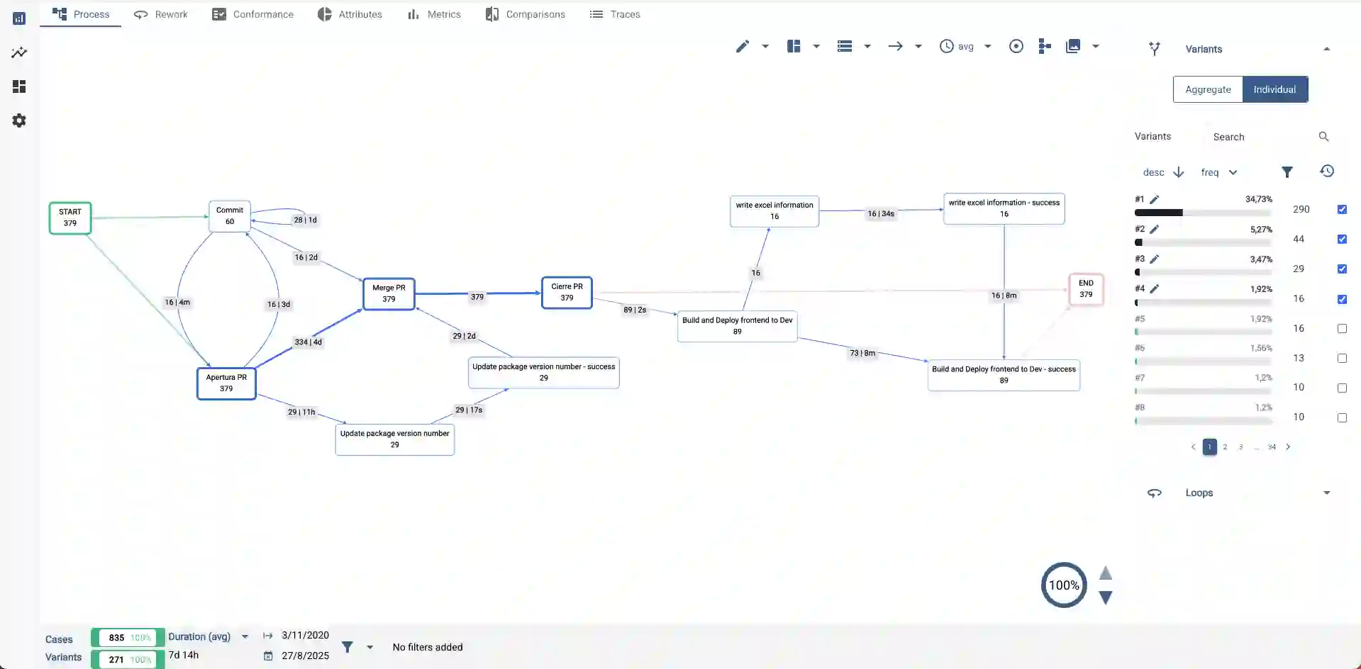 CodeSight is an end-to-end system designed to anticipate deadline compliance in software development workflows. It captures development and deployment data directly from GitHub, transforming it into process mining logs for detailed analysis. From these logs, the system generates metrics and dashboards that provide actionable insights into PR activity patterns and workflow efficiency. Building on this structured representation, CodeSight employs an LSTM model that predicts remaining PR resolution times based on sequential activity traces and static features, enabling early identification of potential deadline breaches. In tests, the system demonstrates high precision and F1 scores in predicting deadline compliance, illustrating the value of integrating process mining with machine learning for proactive software project management.