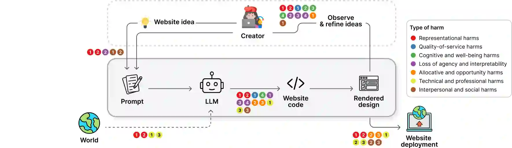 翻译:生成式人工智能以其同质化倾向而闻名,常会复现训练数据中的主流风格惯例。然而,这些同质化效应如何延伸至网页设计这类复杂结构性任务,目前尚不明确。随着非专业创作者日益转向使用大语言模型进行“氛围编码”来创建网站——即通过提示描述美学和功能目标而非直接编写代码——他们可能在无意中缩小了设计的多样性,并限制了整个互联网上的创意表达。本文探究了网页氛围编码中设计同质化的可能性。我们首先描述了氛围编码的生命周期,指出了同质化风险可能出现的阶段。接着,我们进行了一项社会技术风险分析,剖析了网页氛围编码的潜在危害及其与设计同质化的相互作用。我们发现,对“无摩擦生成”的追求可能会加剧同质化及其危害。最后,我们提出了一个以“生产性摩擦”理念为核心的缓解框架。通过在微观、中观和宏观层面的案例研究,我们展示了以生产性摩擦为核心如何能够赋能创作者,使其能够挑战默认输出,并在人工智能介导的网页设计中保持表达的多样性。