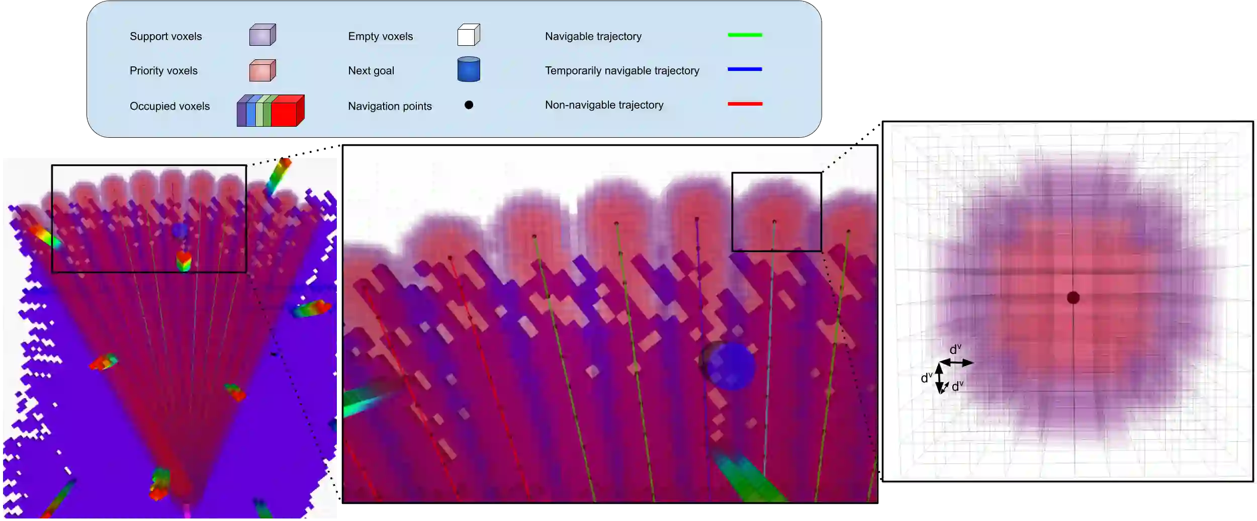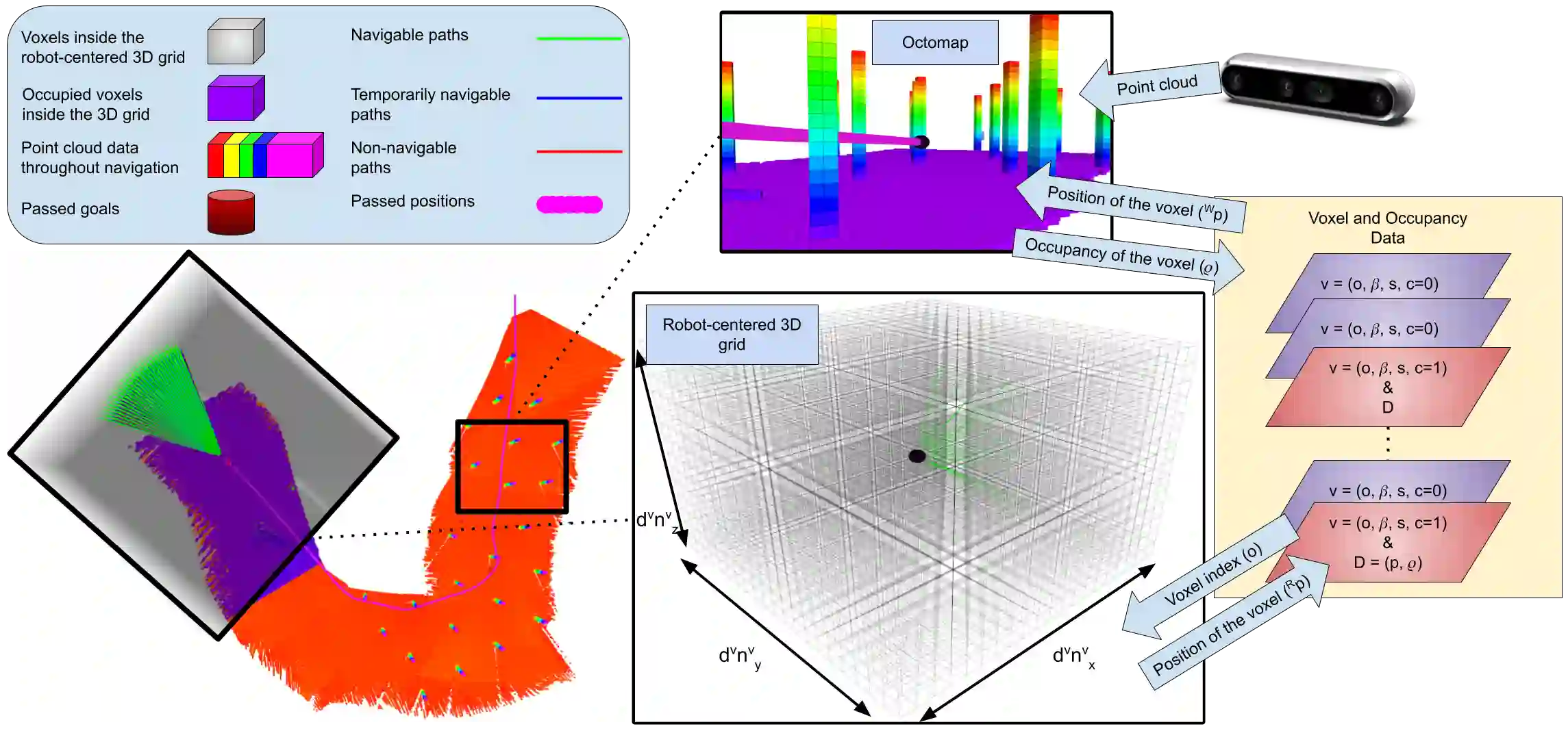 翻译:本文描述和分析在未知环境中移动机器人的被动导航框架。 这种方法并不依赖于全球地图,而只是考虑其机器人中心3D网格结构的本地占用情况。 提议的算法能够通过对飞行中预先抽样的轨迹进行超常评估来快速导航。 在每个周期, 这些路径都根据超常性特征, 如接近目标、 先前选择的轨迹和附近障碍等, 以加权成本功能进行评估。 本文引入了一种系统的方法, 用以计算选定轨迹上可行的布局, 然后再将其发送给执行动作的控制器。 定义框架中的结构并提供执行细节。 本文还解释了如何调整其离线参数和在线参数。 为了显示算法在未知环境中的多功能和适应性, 提供了各种地图上的物理模拟。 基准测试显示了所拟议的算法优于先前的反复度和另一个状态方法。 可以在url{ https://gibub. com/ mab/Restent 上找到算法和基准数据。