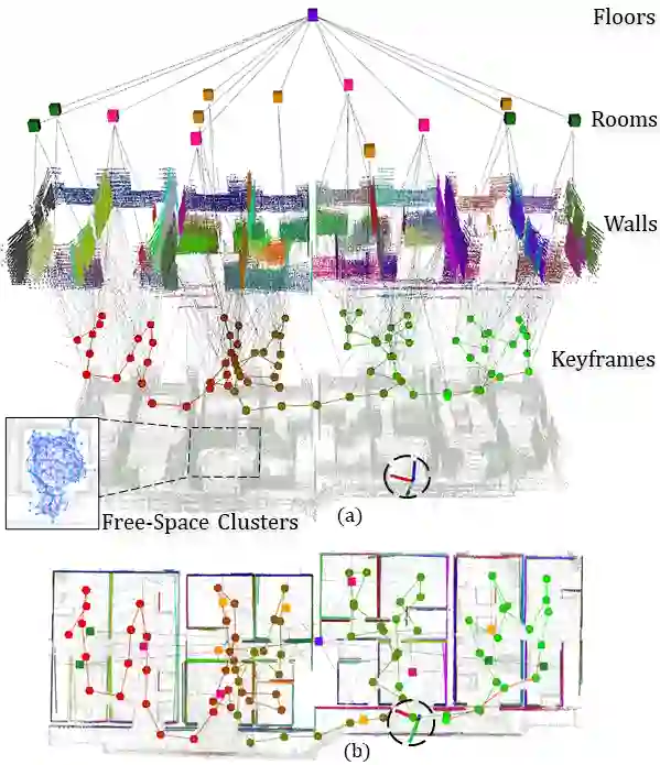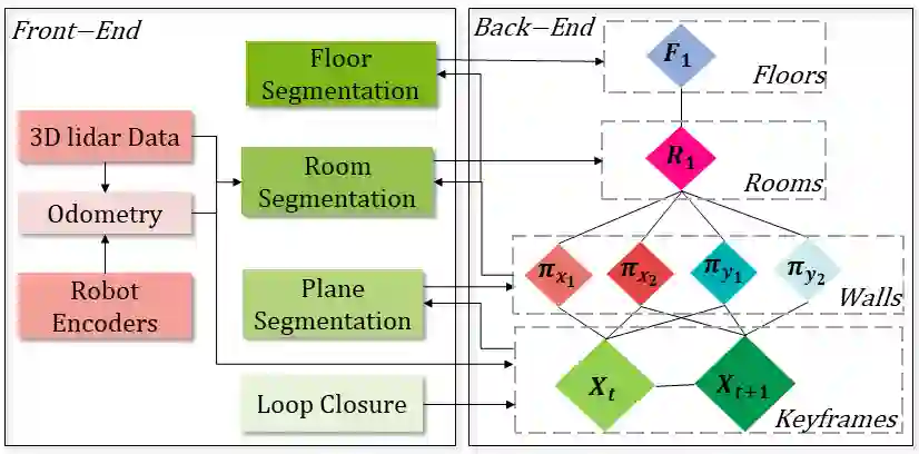 翻译:在本文中,我们展示了一个进化版的“情境图”,该图以单一可优化要素图、一个包含相关测量和机器人配置的机器人键盘图和3D场景图作为一组机器人键盘,包含相关的测量和机器人配置,以及一个3D场景图作为高层次的环境代表,将不同的几何元素与语义属性和这些元素之间的关系信息编码起来。我们提议的S-格+是一个新型的四层要素图,其中包括:(1)一个带有机器人的钥匙框架层,提出估计数字;(2)一个墙层代表墙表面,(3)一个包含几套壁平面的房间层,(4)一个在一定的楼层层内收集房间的层层。上图是实时优化的,目的是获得对机器人的面貌及其地图的可靠和准确估计,同时构建和利用这些元素之间的高度信息。为了提取这样的高层次信息,我们介绍了利用已绘制的壁平面图和自由空间集群的新型房间和地面分解算法。我们测试了S-Graphs+的多层数据结构,包括一个内部环境的模拟,同时模拟了内部环境的更深层数据环境,用真实的模拟,用真实的模型来采集的模型来测量的办公室,用真实的建筑模型来采集的模型来构建。