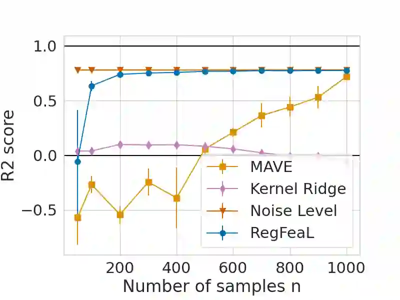 Representation learning plays a crucial role in automated feature selection, particularly in the context of high-dimensional data, where non-parametric methods often struggle. In this study, we focus on supervised learning scenarios where the pertinent information resides within a lower-dimensional linear subspace of the data, namely the multi-index model. If this subspace were known, it would greatly enhance prediction, computation, and interpretation. To address this challenge, we propose a novel method for linear feature learning with non-parametric prediction, which simultaneously estimates the prediction function and the linear subspace. Our approach employs empirical risk minimisation, augmented with a penalty on function derivatives, ensuring versatility. Leveraging the orthogonality and rotation invariance properties of Hermite polynomials, we introduce our estimator, named RegFeaL. By utilising alternative minimisation, we iteratively rotate the data to improve alignment with leading directions and accurately estimate the relevant dimension in practical settings. We establish that our method yields a consistent estimator of the prediction function with explicit rates. Additionally, we provide empirical results demonstrating the performance of RegFeaL in various experiments.