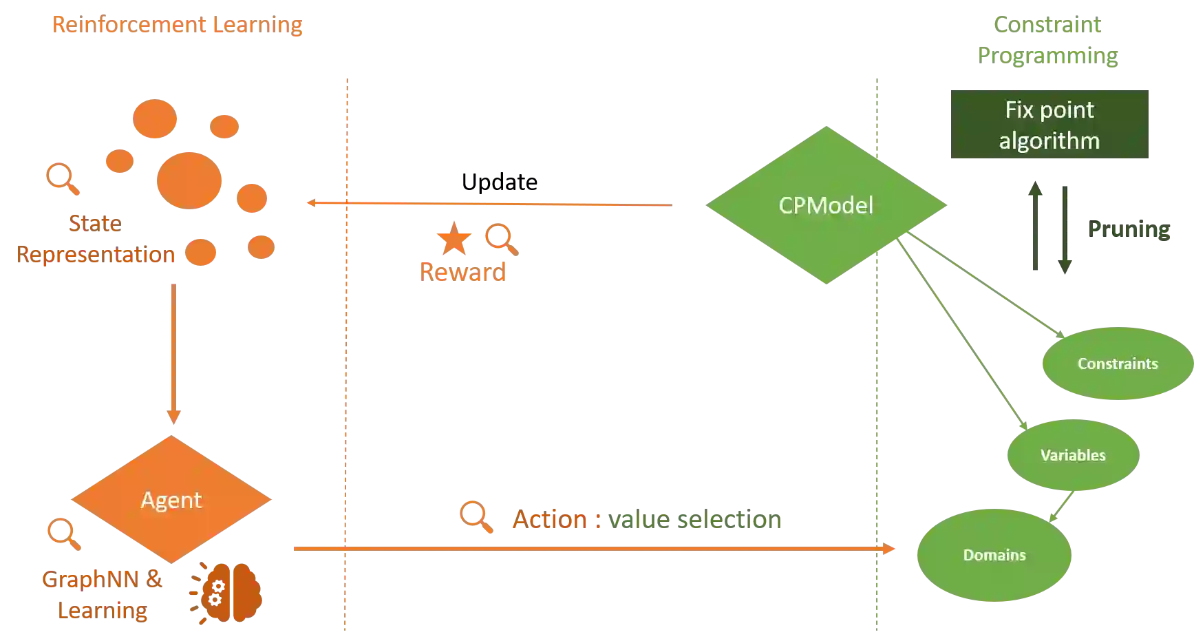 翻译:多年来,设计解决组合优化问题的高效通用算法一直是一个积极的研究领域。标准精确的解决方法基于对解决方案集的精明和完整列举。一种关键和非三重的设计选择是分流战略,指导搜索如何进行。过去十年已经表明对设计基于机械学习的混合法以解决组合优化问题的兴趣日益增长,目的是利用历史数据的知识解决类似的新问题。光是使用这种超常方法只能提供近似的解决办法,但无法证明是最佳的,也无法对其解决方案加以限定。最近的工作表明,强化学习可以成功地用于推动制约程序(CP)解决方案的搜索阶段。然而,还表明,这种混合化具有挑战性,因为标准CP框架并不本地地包括机器学习机制,从而导致效率低下。本文为SeaPearl提供了灵活性概念的证明,这是在朱莉亚实施的一个新的混合方案解决方案解决方案解决方案解决方案,支持机器学习常规常规,以便学习部门决定,同时利用强化绩效学习。支持我们学习了两个解决方案的模型,同时也为未来解决方案提供了一种解决方案的模型。