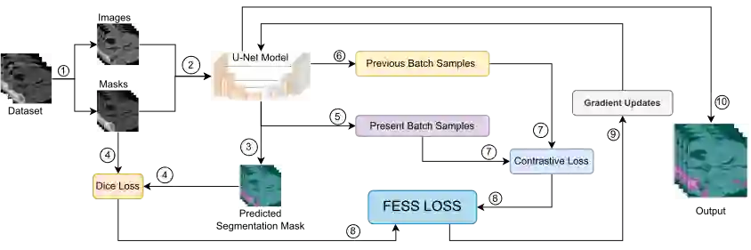 Medical image segmentation is a critical process in the field of medical imaging, playing a pivotal role in diagnosis, treatment, and research. It involves partitioning of an image into multiple regions, representing distinct anatomical or pathological structures. Conventional methods often grapple with the challenge of balancing spatial precision and comprehensive feature representation due to their reliance on traditional loss functions. To overcome this, we propose Feature-Enhanced Spatial Segmentation Loss (FESS Loss), that integrates the benefits of contrastive learning (which extracts intricate features, particularly in the nuanced domain of medical imaging) with the spatial accuracy inherent in the Dice loss. The objective is to augment both spatial precision and feature-based representation in the segmentation of medical images. FESS Loss signifies a notable advancement, offering a more accurate and refined segmentation process, ultimately contributing to heightened precision in the analysis of medical images. Further, FESS loss demonstrates superior performance in limited annotated data availability scenarios often present in the medical domain.