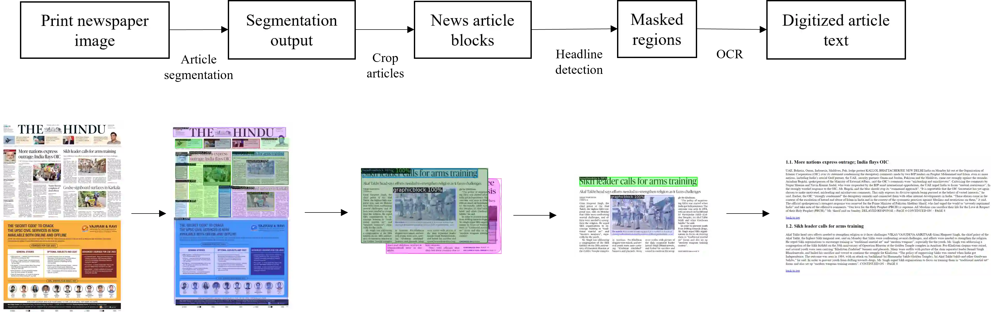 翻译:每日获取新闻内容对于印刷缺陷的人来说,包括盲人和低视率的人来说,仍是一个巨大的挑战,因为印刷内容不透明,并且受到在线来源的阻碍。在本文中,我们提出我们的方法,将印刷报纸数字化为一种无障碍的文件格式,例如HTML。我们使用一个实例分解和检测框架来进行报纸布局分析,然后由OCR来识别头条和文章文本等文本要素。此外,我们提议为Mask-RCNN框架提供EdgeMask损失功能,以改善分解蒙面的界限,从而改进下游OCR任务的准确性。我们经常地表明,我们拟议的损失功能将新闻文章文本的文字错误率降低32.5%。