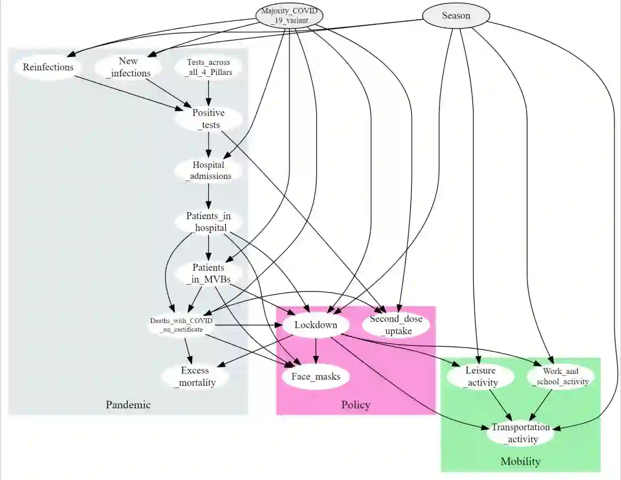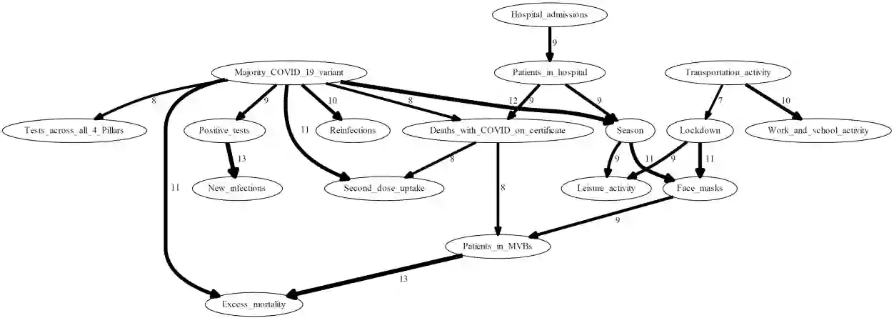 Causal machine learning (ML) algorithms recover graphical structures that tell us something about cause-and-effect relationships. The causal representation praovided by these algorithms enables transparency and explainability, which is necessary for decision making in critical real-world problems. Yet, causal ML has had limited impact in practice compared to associational ML. This paper investigates the challenges of causal ML with application to COVID-19 UK pandemic data. We collate data from various public sources and investigate what the various structure learning algorithms learn from these data. We explore the impact of different data formats on algorithms spanning different classes of learning, and assess the results produced by each algorithm, and groups of algorithms, in terms of graphical structure, model dimensionality, sensitivity analysis, confounding variables, predictive and interventional inference. We use these results to highlight open problems in causal structure learning and directions for future research. To facilitate future work, we make all graphs, models, data sets, and source code publicly available online.