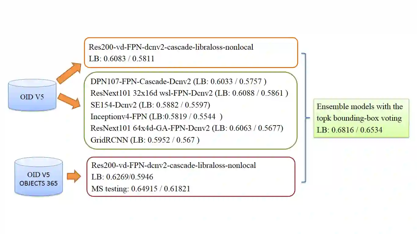We present an object detection framework based on PaddlePaddle. We put all the strategies together (multi-scale training, FPN, Cascade, Dcnv2, Non-local, libra loss) based on ResNet200-vd backbone. Our model score on public leaderboard comes to 0.6269 with single scale test. We proposed a new voting method called top-k voting-nms, based on the SoftNMS detection results. The voting method helps us merge all the models' results more easily and achieve 2nd place in the Google AI Open Images Object Detection Track 2019.