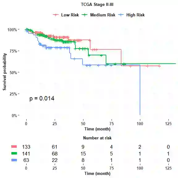 翻译:大多数早期直肠癌(CRC)患者可以单靠外科手术治愈,只有某些高风险的CRC早期患者才能从肾上腺炎中得益。然而,很少有经过验证的生物标志可用于准确预测手术后化疗的存活率。我们开发了一种新的深层次学习算法(CRCNet ), 使用分子和细胞肿瘤学的全流图像预测二/三期化学疗法的存活率。我们通过交叉验证和外部使用癌症基因组图集(TCGA)的一个独立组群对CRCNet进行了验证。我们表明,CRCNet不仅能够准确预测存活率预测,而且能够准确预测抗生素化疗治疗的治疗效果。我们发现,在经过化学治疗的病人中,Adjuvant化疗最有效,而且持续时间也大大延长了。相反,在CRCNet的中低风险分组中、低风险分组中都观测到极少的化疗益。因此,CRCNet在二/III阶段的指导治疗中可能大有用。