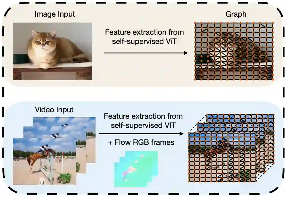 翻译:在本文中, 我们描述一个基于图形的算法, 该算法使用自监督变压器获得的特征探测图像和视频和视频中的突出对象, 并进行分解。 采用这种方法, 构成图像或视频的图像补丁被组织成一个完全连接的图形, 每对补丁的边缘被标记为使用变压器所学特征的补丁之间的类似评分。 然后, 显要对象的检测和分解被设计成一个图形切分问题, 并使用典型的普通化切换算法来解决 。 尽管这一方法简单, 它在多个通用图像和视频的检测和分解任务上取得了最先进的结果。 对于未受监督的发现对象, 这个方法在用 VOC07、 VOC12 和 CO20K 数据集进行测试时, 以6.1% 、 5.7% 和 2.6% 的差差差, 在用 ECSBISSDS、 DUDS 和 5.2 的当前数据SEV 测试时, 也用ECSD- SEVS 和 DSEVS- 的SD- SEVAL, 的 的 方法,, 和 SALUDUDSD- SUD- SUD- SD- SLA- SLS 的 的 的 的 和 的 的 和 的 也实现了 方法, 。