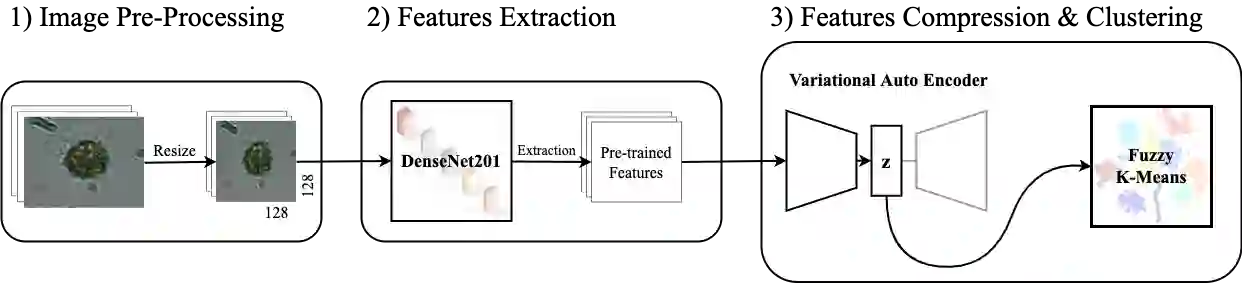 翻译:对浮游生物进行现场监测对于保护水生生态系统至关重要。Plankton微生物事实上容易发生轻微的环境扰动,这可以反映随后的形态和动态改变。现在,先进的自动或半自动获取系统的存在使得能够产生越来越多的浮游生物图像数据。采用机器学习算法对这些数据进行分类可能受到人工批注的巨大成本的影响,因为获得的数据数量巨大,浮游生物物种的数量也很多。为了应对这些挑战,我们建议建立一个高效的、不受监督的学习管道,以提供对浮游微生物的准确分类。我们利用两步程序建立了一套图像描述仪。首先,对通过事先训练的神经网络提取的特征进行了静态自动编码(VAE)培训。然后,我们用所学过的潜伏空间作为图像描述仪。我们比较了我们的方法与最先进的、未经监督的方法,其中使用一套预先定义的手动特征来对浮游微生物微生物进行精确分类。我们为浮游生物图像进行分组而制作的一组图像标定的图解。我们提出的模型将改进了对浮游生物图像进行模型的分析。