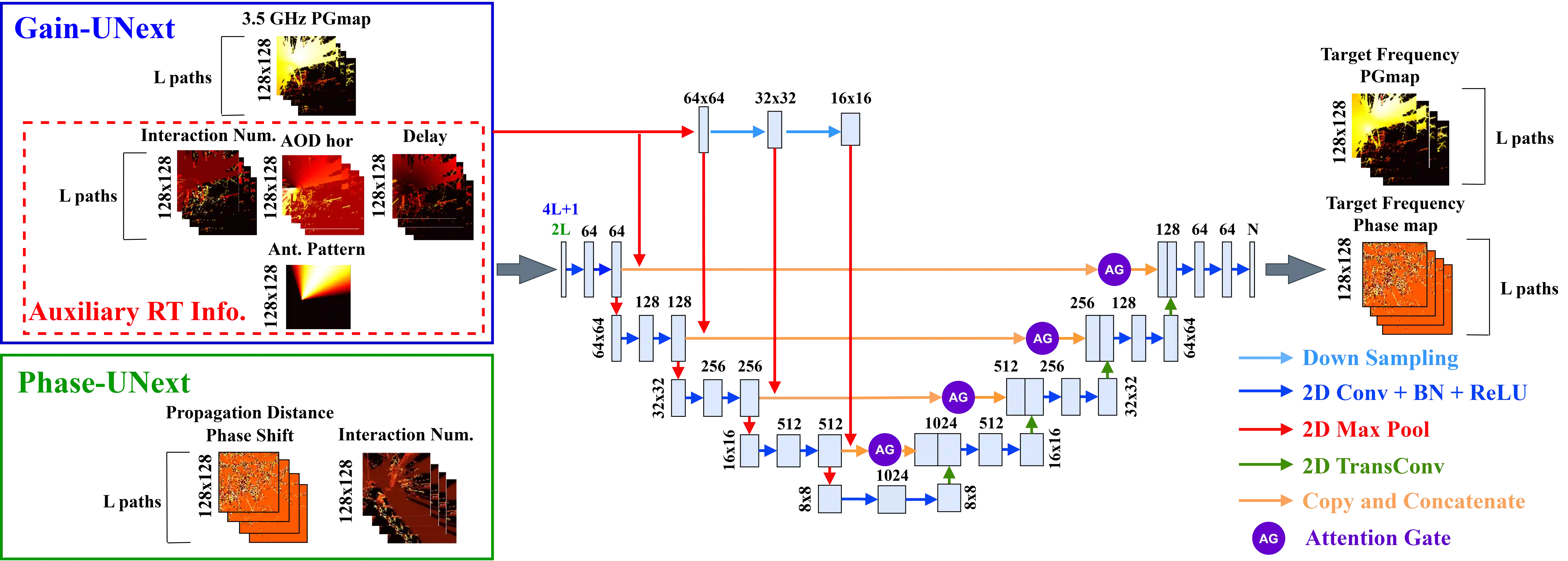 翻译:精确的跨频段信道预测对于6G网络至关重要,尤其是在中高频段(FR3,7--24 GHz),该频段的穿透损耗与遮挡效应极为显著。尽管射线追踪(RT)能提供高保真度的建模,但其计算开销巨大,且高频数据采集成本高昂。为应对这些挑战,我们提出了CIR-UNext——一种深度学习框架,旨在利用丰富的3.5 GHz信道冲激响应(CIR)数据来预测7 GHz频段的CIR。该框架将基于RT的数据集处理流程与注意力U-Net(AU-Net)的变体相结合,分别用于增益与相位预测。所提出的AU-Net-Aux模型在未见过的复杂环境中实现了0.58 dB的中值增益误差与0.27弧度的相位预测误差。此外,我们将CIR-UNext扩展为基础模型Channel2ComMap,用于MIMO-OFDM系统的吞吐量预测,其性能优于现有方法。总体而言,CIR-UNext为跨频段预测提供了高效且可扩展的解决方案,可支持6G网络中的定位、波束管理、数字孪生及智能资源分配等应用。