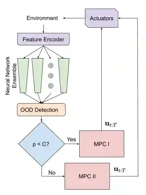We present SODA-MPC, a Safe, Out-of-Distribution-Adaptive Model Predictive Control algorithm, which uses an ensemble of learned models for prediction, with a runtime monitor to flag unreliable out-of-distribution (OOD) predictions. When an OOD situation is detected, SODA-MPC triggers a safe fallback control strategy based on reachability, yielding a control framework that achieves the high performance of learning-based models while preserving the safety of reachability-based control. We demonstrate the method in the context of an autonomous vehicle, driving among dynamic pedestrians, where SODA-MPC uses a neural network ensemble for pedestrian prediction. We calibrate the OOD signal using conformal prediction to derive an OOD detector with probabilistic guarantees on the false-positive rate, given a user-specified confidence level. During in-distribution operation, the MPC controller avoids collisions with a pedestrian based on the trajectory predicted by the mean of the ensemble. When OOD conditions are detected, the MPC switches to a reachability-based controller to avoid collisions with the reachable set of the pedestrian assuming a maximum pedestrian speed, to guarantee safety under the worst-case actions of the pedestrian. We verify SODA-MPC in extensive autonomous driving simulations in a pedestrian-crossing scenario. Our model ensemble is trained and calibrated with real pedestrian data, showing that our OOD detector obtains the desired accuracy rate within a theoretically-predicted range. We empirically show improved safety and improved task completion compared with two state-of-the-art MPC methods that also use conformal prediction, but without OOD adaptation. Further, we demonstrate the effectiveness of our method with the large-scale multi-agent predictor Trajectron++, using large-scale traffic data from the nuScenes dataset for training and calibration.