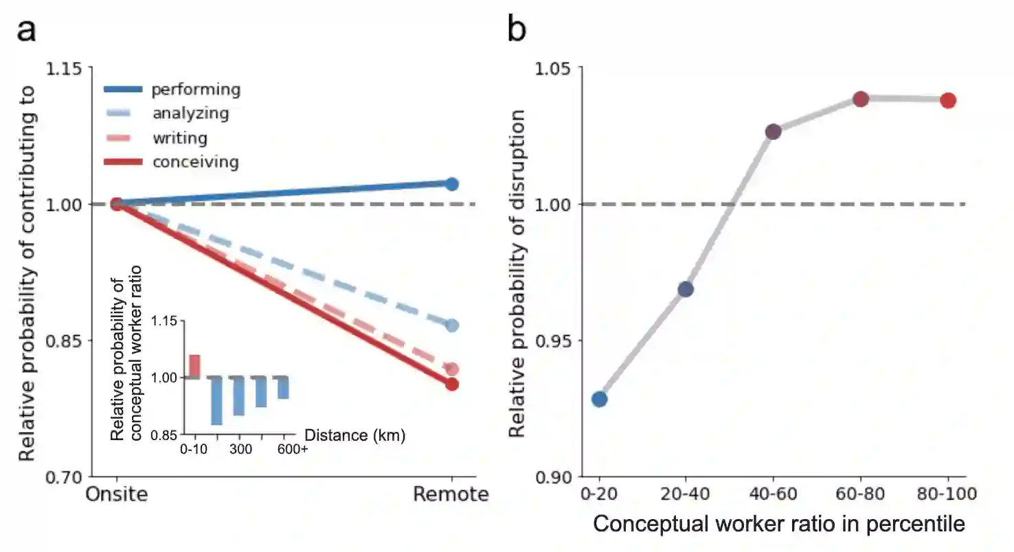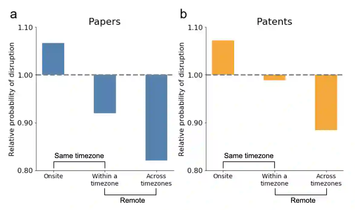 翻译:世界各地的科学家和发明家今天比以往任何时候都更加丰富和相互联系。 但是,虽然现在有更多的人发现发现,更多的想法可以以新的方式重新配置,但研究表明,新的想法越来越难找到矛盾的再组合增长理论。在本文中,我们对这一明显的难题提供了新的见解。在过去半个世纪里,分析全球各地2 000万份研究文章和400万份专利申请,我们开始记录不同地点远程合作的兴起,强调全球科学家和发明家之间日益扩大的相互联系。然而,我们也表明,在所有领域、时期和团队规模上,这些分布的团队的研究人员总是不太可能找到与其现场对应人员相比的突破性发现。使用新的数据集使我们能够探索每个团队的分工。我们发现,分布的团队成员倾向于在技术任务如收集和分析数据方面进行合作,但不太可能在概念性任务上联合起来,例如发现新的想法和设计研究。因此,尽管远程团队在理论上进行合作,但实际的合作中心在后期和团队规模上却总是越来越不可能取得突破性的发现,而这种远程项目任务则有可能产生更难以实现的知识。