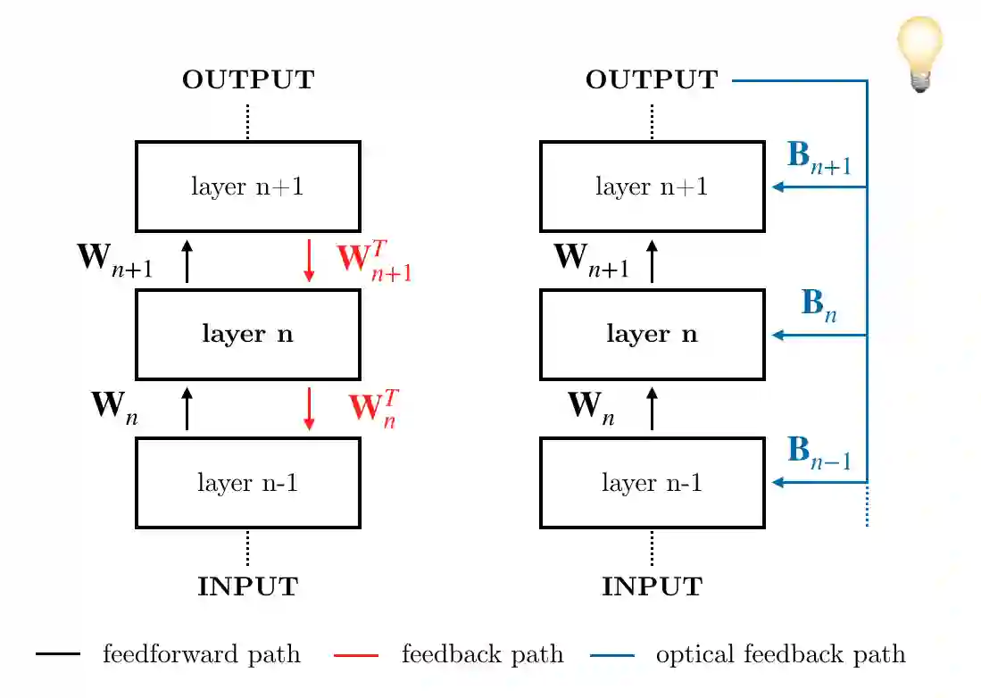 翻译:缩放假设刺激了过去数万亿参数模型的扩展,作为改善绩效的途径。最近的重大发展,如GPT-3-3号模型,是由这一推测驱动的。然而,随着模型的扩大,以反向反向反向法对其进行有效培训变得十分困难。由于模型、管道和数据平行法分布参数和梯度,计算节点的计算,通信具有挑战性:这是进一步缩小规模的瓶颈。在这项工作中,我们认为,替代培训方法可以缓解这些问题,也可以为极端规模培训硬件的设计提供参考。事实上,使用同步的不对称方法,同时使用可平行反向的反向通道,例如直接反向感应,通信需求就会急剧减少。我们展示了直接反向协调光学加速器,能够用数万亿参数进行随机预测。我们在基准任务上展示了我们的系统,同时使用完全连接的和图图式的革命网络。我们的硬件是用于培训神经网络的第一个建筑-不可知光共处理器。这是朝向建造可缩的硬件迈出的重要一步,能够超越反向反向反向反向反向方向,打开新的学习新途径。