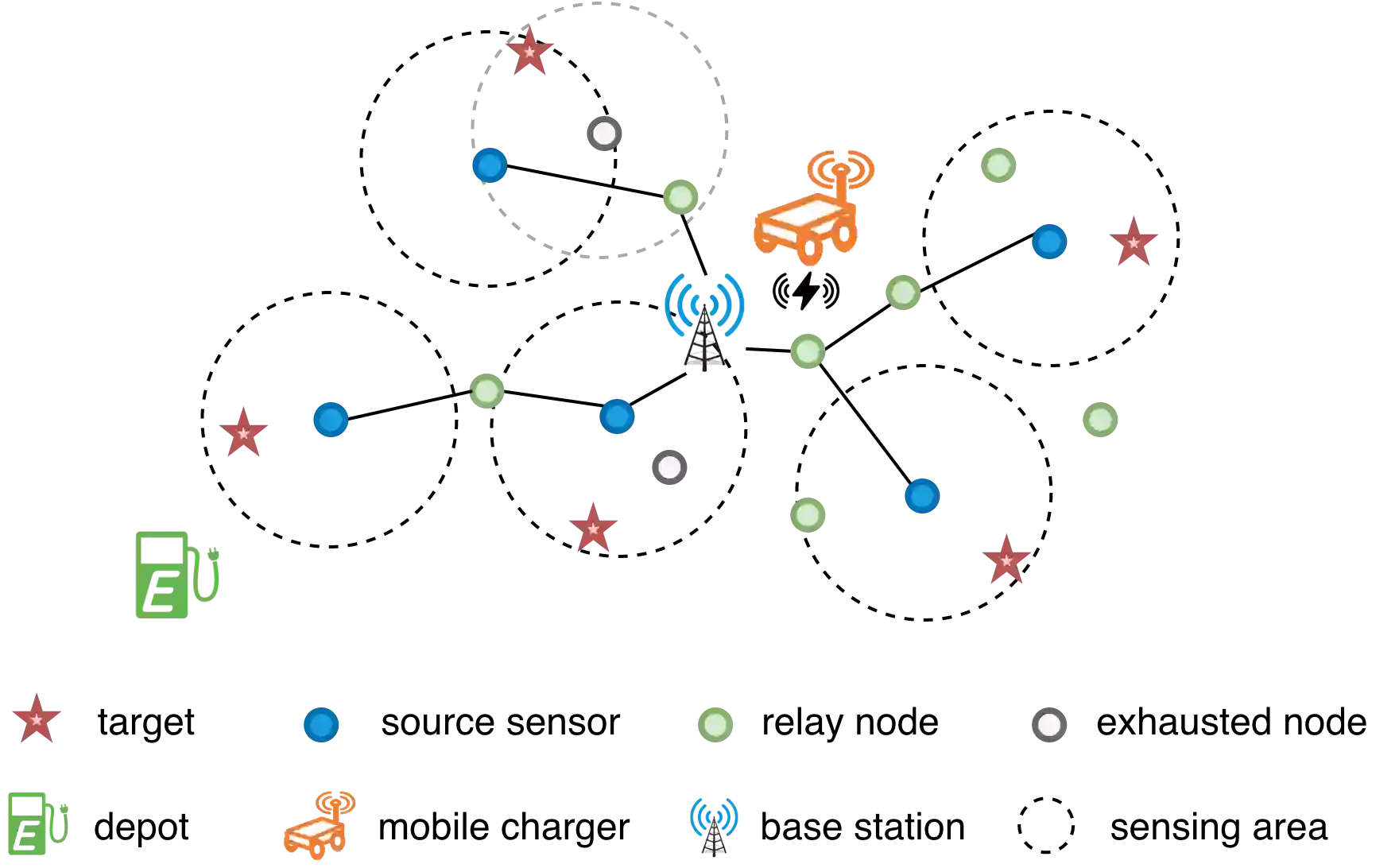 翻译:无线传感器网络由随机分布的传感器节点组成,用于监测目标或感兴趣的领域。维持持续监测网络是一项挑战,因为每个传感器的电池容量有限。无线电能转让技术正在成为通过部署移动充电器(MC)为传感器充电而激活传感器的可靠解决方案。然而,由于网络中产生的不确定性,为传感器设计最佳充电路径具有挑战性。传感器的能量消耗率可能因网络地形变化不可预测而大幅波动,如节点故障。这些变化还导致每个传感器的重要性发生变化,而现有工程中通常假定这些传感器的重要性也随之发生变化。我们在本文中提出一个新的适应性充电计划,采用深度强化学习(DRL)方法来应对这些挑战。具体地说,我们赋予MC一项充电政策,决定下一个传感器在网络当前状态上充电的调。我们随后使用一个深神经网络来调整这种充电政策,通过强化学习技术加以培训。我们的模型可以适应网络顶层学的自发变化。我们在本文中提出这样的挑战,我们采用新的调整性充电,方法是采用一种巨大的变压算法。