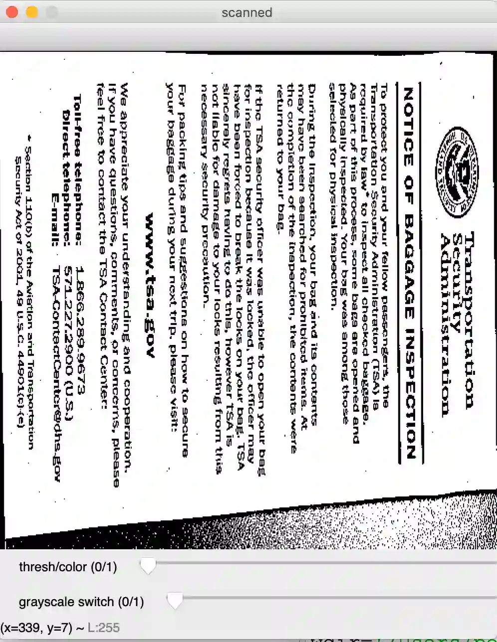 翻译:在以下论文中,我们综合了NumPy图书馆和OpenCv图书馆提供的各种基本功能,它们是计算机视野应用的开放源头,例如将彩色图像转换为灰度、计算阈值、寻找轮廓和使用这些轮廓点,以便利用Python3.7版对用户输入的图像进行视角转换。其他特征包括裁剪、旋转和保存。所有这些功能和特征在逐步实施后,将产生完整的扫描应用。应用程序包括以下步骤:查找轮廓、应用视野变换和亮亮图像、调控并应用过滤器取消噪音,以及转换特殊作物算法的轮廓特征和视角。所述技术在各种样本中实施。