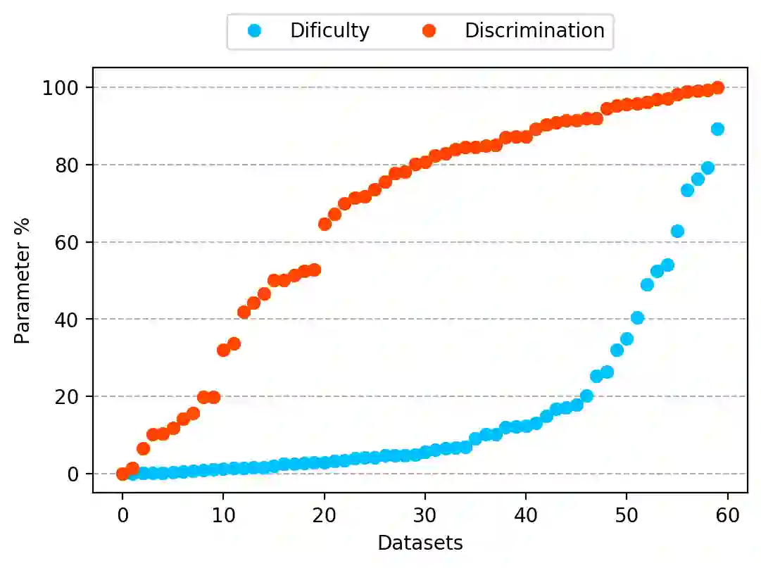 翻译:机器学习(ML)所涵盖的分类实验由两个重要部分组成: 数据和算法。 由于它们是问题的一个基本部分, 两者都是问题的基本部分, 在根据基准评估模型的性能时都必须加以考虑。 最佳分类者需要严格的基准来进行适当的评估。 为此, 使用了OpenML- CC18等金标准基准。 然而, 在业绩评估期间, 通常没有将数据的复杂性与模型一起考虑。 最近的研究使用项目反应理论( IRT) 作为评价数据集和算法的新方法, 能够同时评价两者。 这项工作在根据IMT和Gliko-2 评估模型来评估模型的性能时, 都要考虑到新的评价方法。 Gliko-2 评级系统与 IRT 一起应用了一个新的评价方法, 并结合开发了 DecodIRT 工具来指导对 MRT 的性能进行估算。 它探索了IML- 标准是用来评价其算法能力的一种工具, 如果有一个比原基准更有效率的子集。 它只是一些从经典到混合的分类, 。 它与Ilodio - liketal labal rest daldal be be ex ex ex ex real ex ex ex ex ex ex ex ex ex ex ex ex ex ex exlicuilutal ex ex ex ex ex ex ex ex ex ex ex ex ex ex ex lautus ex ex ex ex ex ex ex exitalitalital ex ex ex ex ex ex lautus ex ex ex laus lauts lauts lautus labildis labildildus ex ex ex ex ex ex ex ex labild. labild.