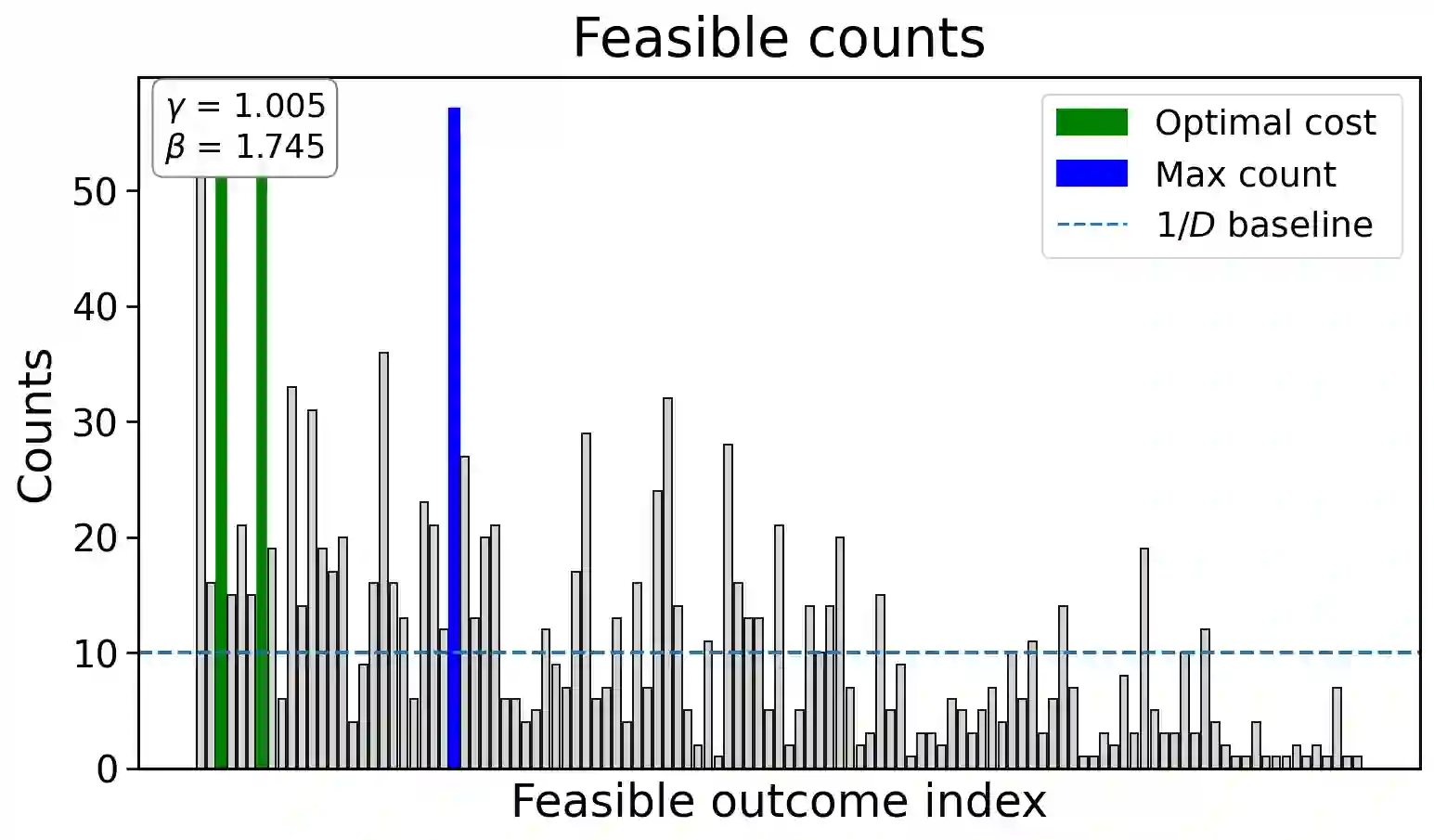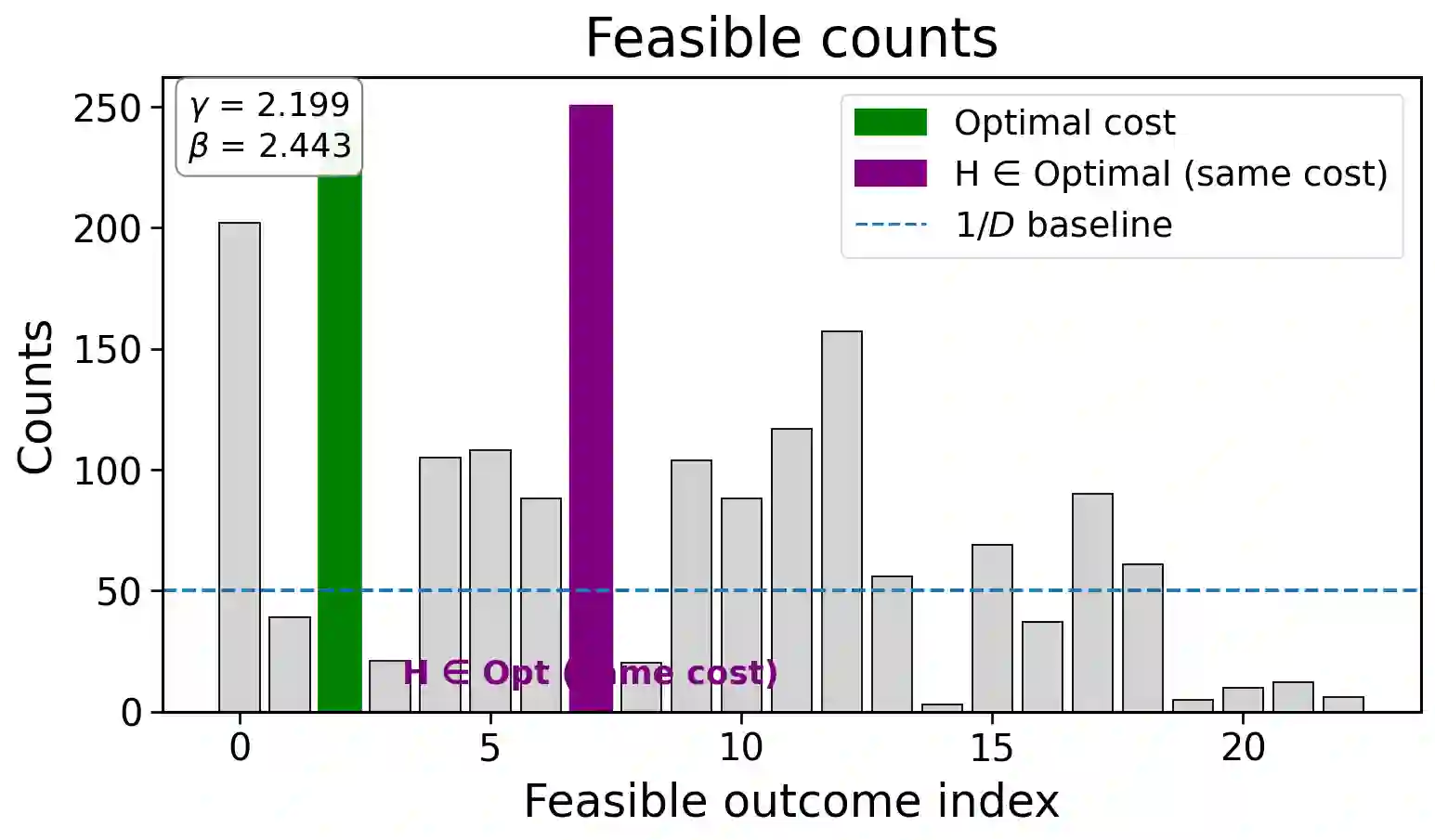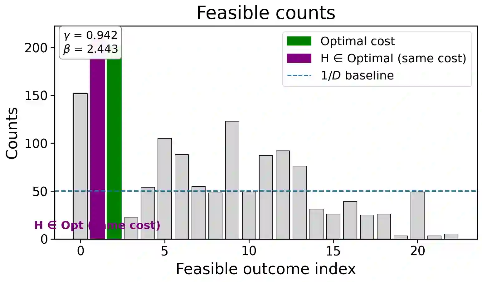 翻译:本文提出约束增强量子近似优化算法(CE-QAOA),这是一种在单热积空间[n]^m内运行的浅层约束感知拟设,其中m为区块数量,每个区块初始化为n量子比特的W_n态。我们给出一种无需辅助量子比特、深度最优的编码器,该编码器通过每个区块n-1个双量子比特旋转制备W_n态,并采用保持单热流形的双局域块XY混合器,该混合器在单激发子空间具有恒定谱隙。在表达能力层面,我们证明了每区块的可控性,这意味着每区块具有近似通用性。在分布行为层面,我们证明经过自然区块与符号置换扭转操作后,浅层CE-QAOA实现了编码酉1-设计,并支持近似二阶矩(2-设计)行为;结合Paley-Zygmund论证,这为有限采样次数提供了反集中性保证。在算法层面,我们将恒定深度采样与确定性可行性检验器结合,构建了多项式时间混合量子经典求解器(PHQC),该求解器可在O(S n^2)时间内返回观测到的最佳可行解,其中S为多项式级采样次数预算。我们获得了两方面优势:首先,当CE-QAOA固定r≥1个不同于起始城市的位置时,相较于从可行集中均匀采样的经典采样器,我们实现了Θ(n^r)级别的采样复杂度降低;其次,相较于仅限于原始比特串采样的经典基线,我们展示了exp(Θ(n^2))级别的极小极大分离。在基于QOPTLib基准库中n∈{4,...,10}城市规模的旅行商问题实例的无噪声电路模拟中,我们通过多项式采样次数预算和由问题规模定义的粗粒度参数网格,在深度p=1时恢复了全局最优解。