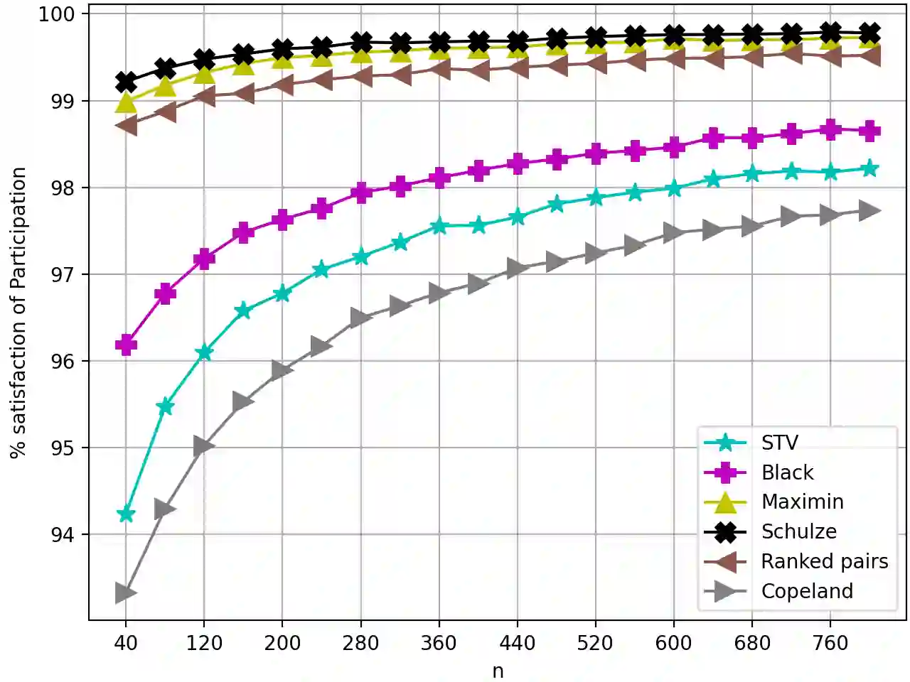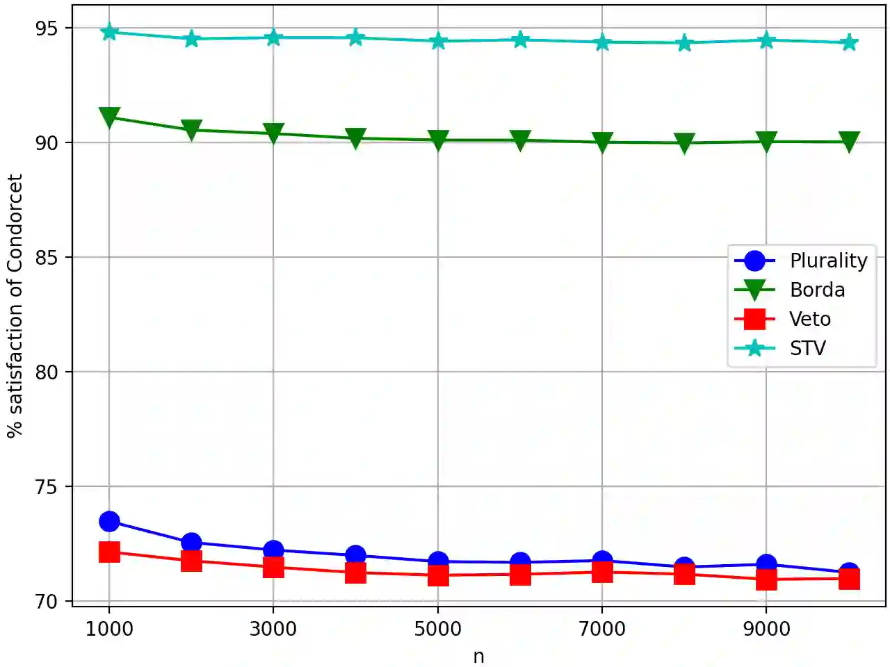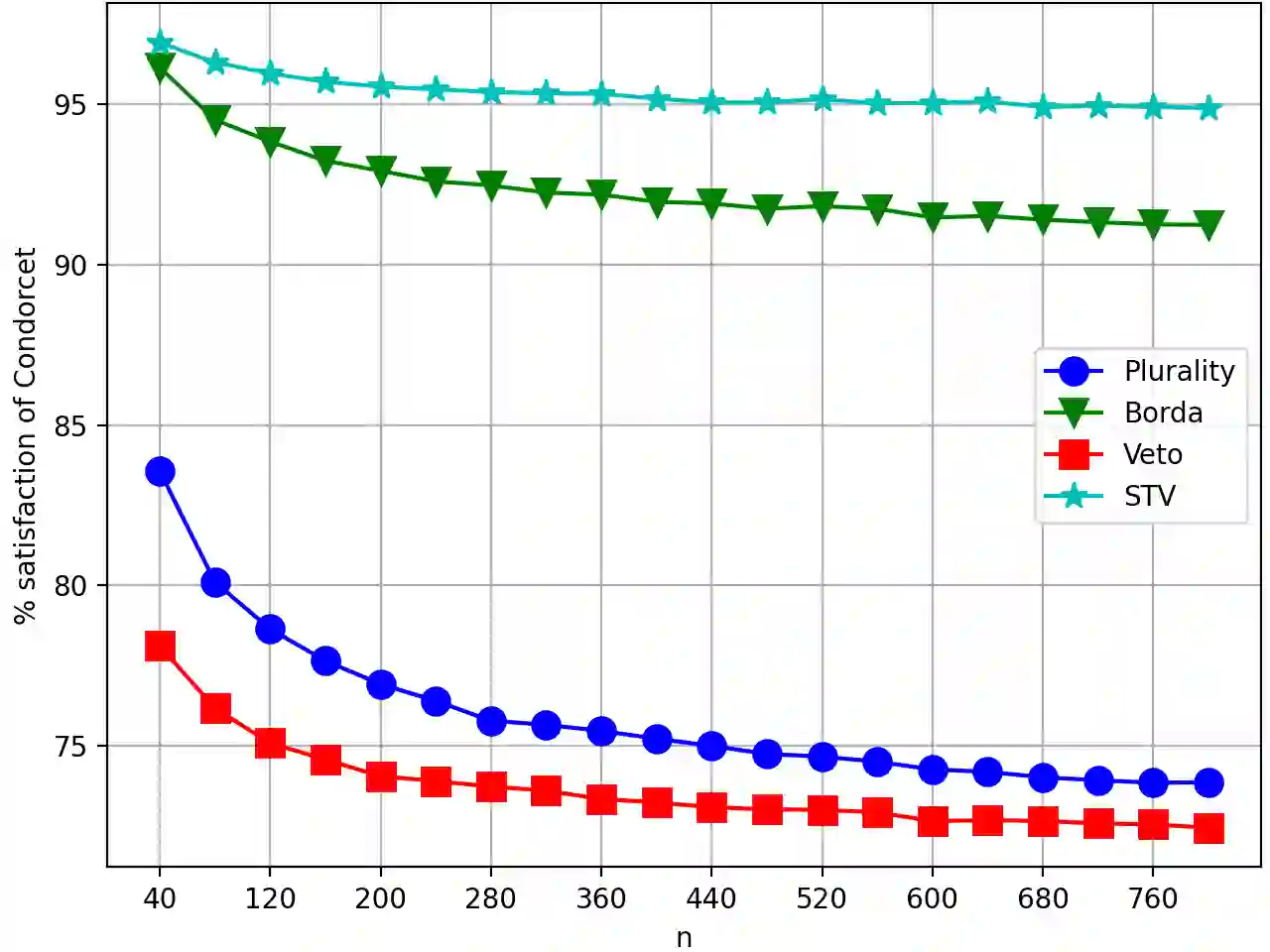 翻译:我们着手全面了解表决法的顺利满意度,为比较投票规则提供一个更精细、更现实的基础。我们采用平滑的社会选择框架,让对手任意选择代理人的“地面真相”偏好,并增加随机噪音。我们着重说明两个经过认真研究的投票法的顺利满意度: Condorcet 标准和参与。我们证明,对于任何固定数量的替代方案,如果选民人数足够多,那么,在相当大范围内的投票规则下,Condorcet标准的顺利满意度是1美元、1美元-ex(-theta(n))美元、1美元/theta(n)-0.5})美元、1美元/ex(-theta(n))美元、1美元/theta(n)美元),或在同一时间是$\theta(1)美元和1\Theta(1)美元。我们证明,对于参与的顺利满意度为1美元/Theta(n)-0.5美元。1994年Berg和Lepelley在一系列投票规则下对结果的公开回答是比标准更高的关切。