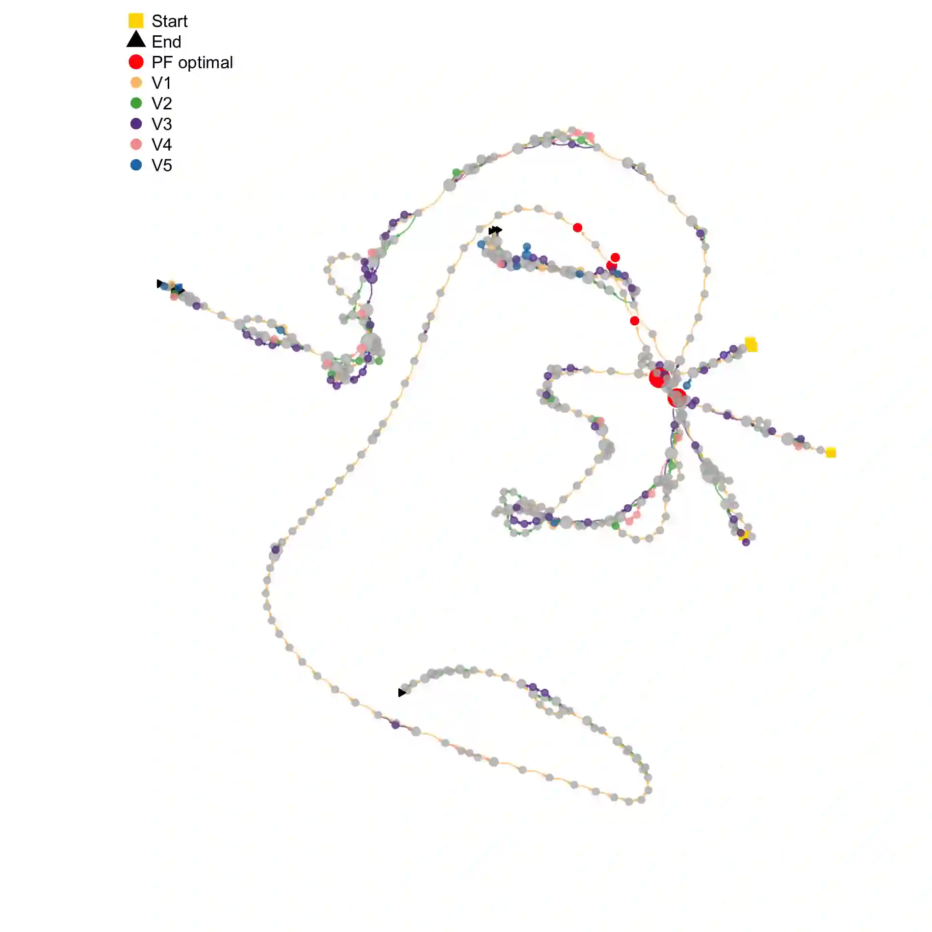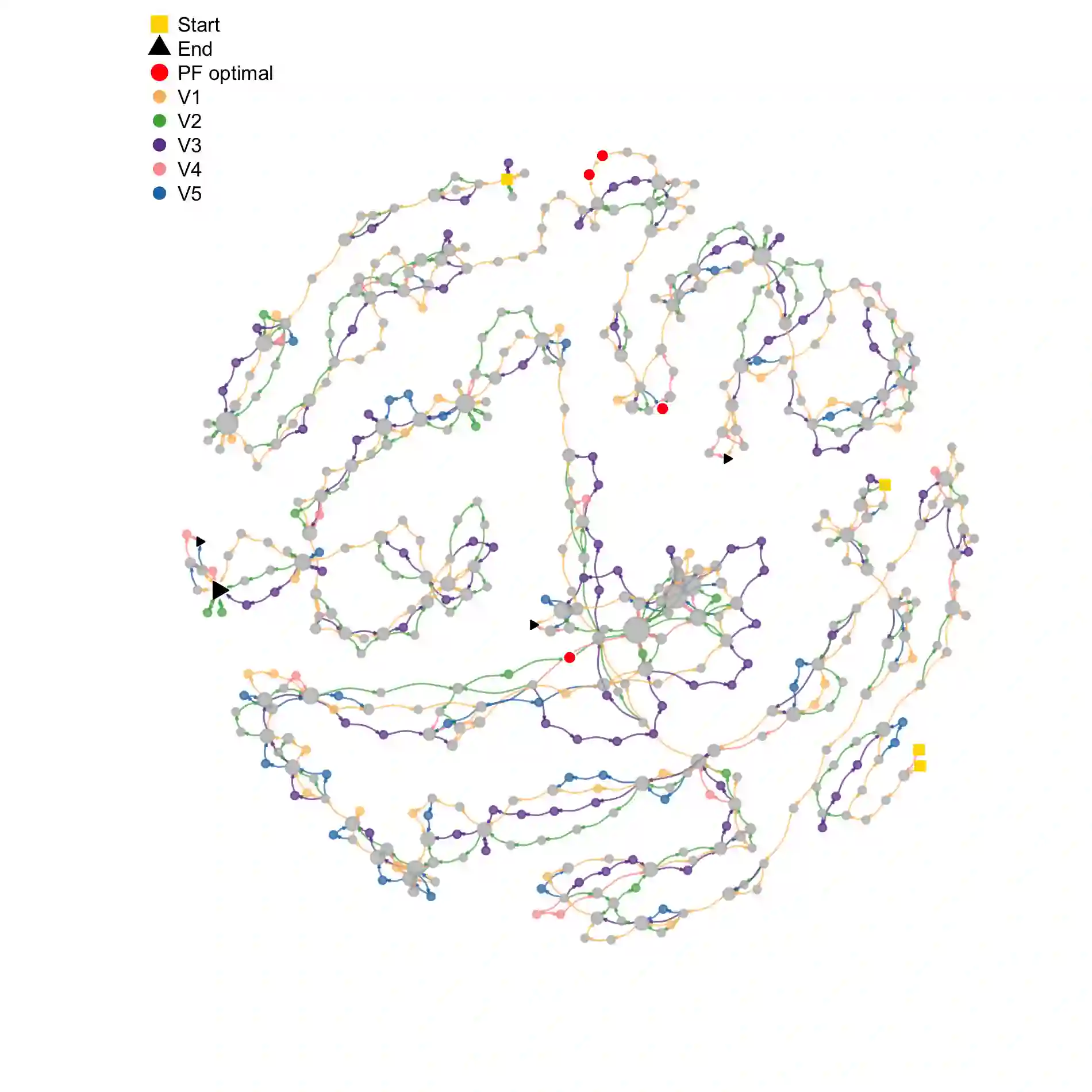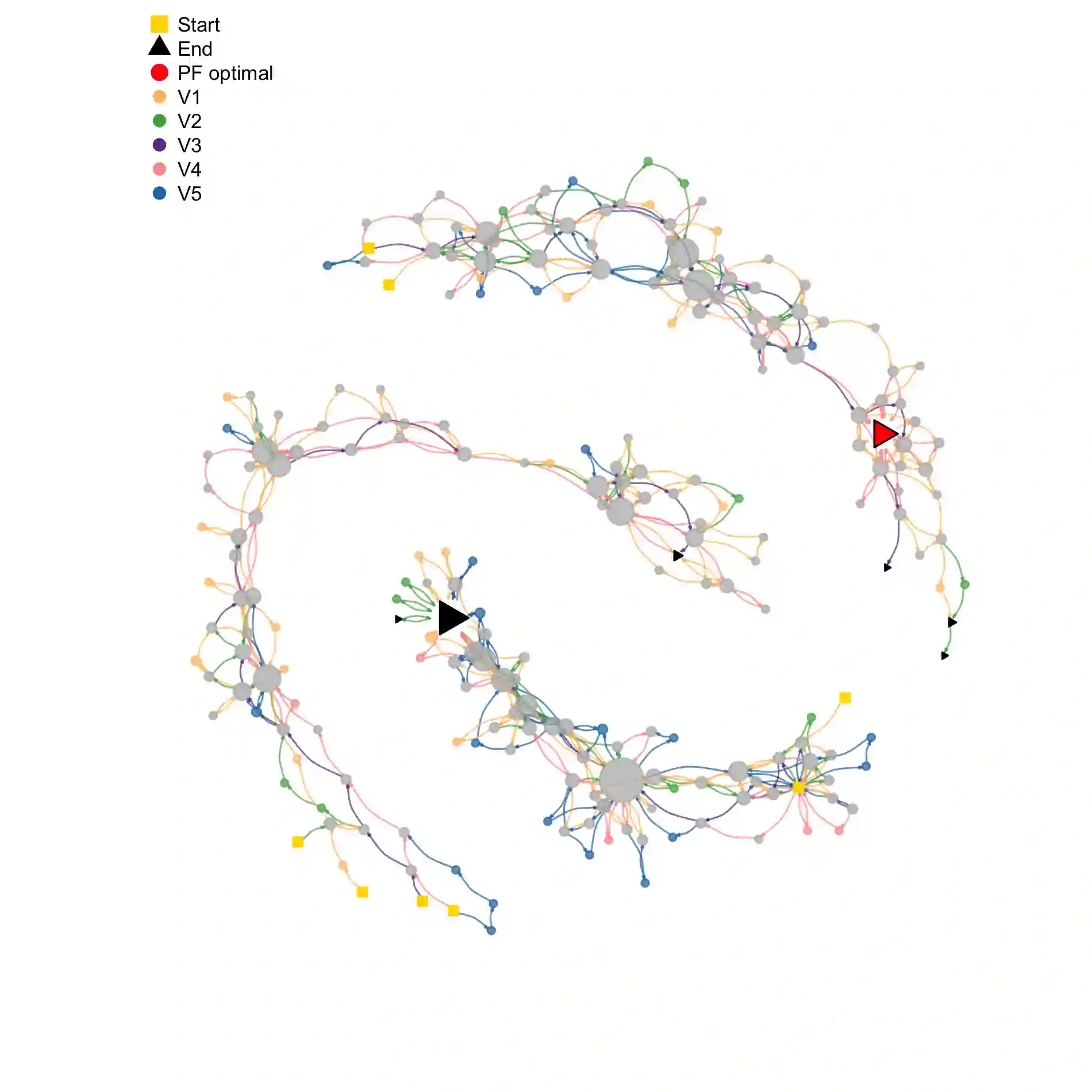 翻译:了解多目标进化算法(MOEAs)的搜索动态仍然是一个尚未解决的问题。 本文扩展了基于网络的最新工具, 搜索轨迹网络( STNs), 以模拟MOEAs的行为。 我们的方法是分解, 将多目标问题转化为几个单一目标问题。 我们显示, STNs可以用来模拟和区分两种流行的多目标算法( MOEA/ D 和 NSGA- II) 的搜索行为, 使用两个和三个目标的10个连续基准问题。 我们的发现表明, 我们可以用 STNs 进行算法分析来改进我们对MOEAs的理解 。