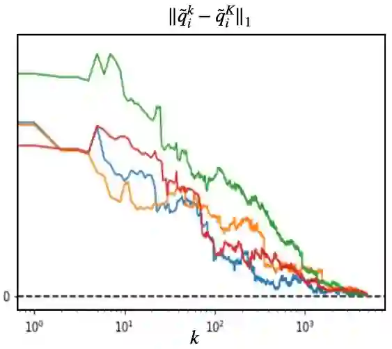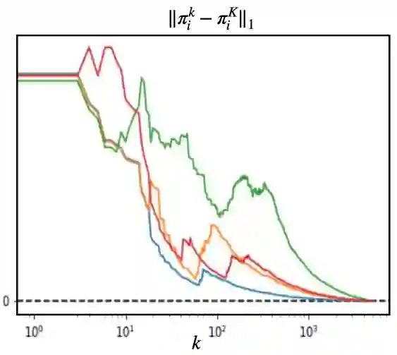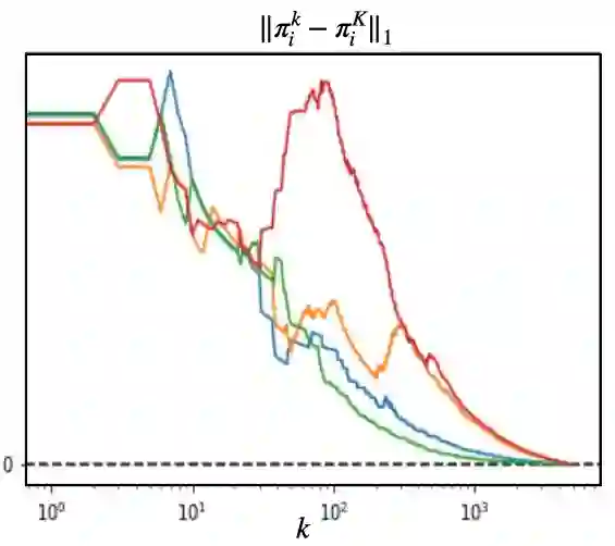 翻译:我们建议多试剂强化学习动态, 并分析其在无限象素折扣的Markov潜在游戏中的趋同特性。 我们关注独立和分散的场景, 玩家只能在每个阶段观察已经实现的状态和他们自己的奖赏。 玩家对游戏模式并不了解, 并且无法相互协调。 在学习动态的每个阶段, 玩家更新了他们对于受干扰的Q- 功能的估计, 根据已经实现的一阶段奖赏, 以不同步的方式评估他们的总或有报酬。 然后, 玩家独立更新他们的政策, 根据估计的Q- 功能, 引入一个平稳的最佳一阶段偏差战略 。 学习动态的一个关键特征是, Q- 功能估计的更新速度比政策要快。 我们证明, 我们学习动态所引发的政策与马尔科夫 潜在游戏的定点纳什平衡相交汇合, 概率 1. 我们的结果建立在两个时间尺度的不同步的随机近近理论基础上, 并且根据Markov 潜在游戏中政策更新的轨迹对潜在功能的单一性进行新的分析 。