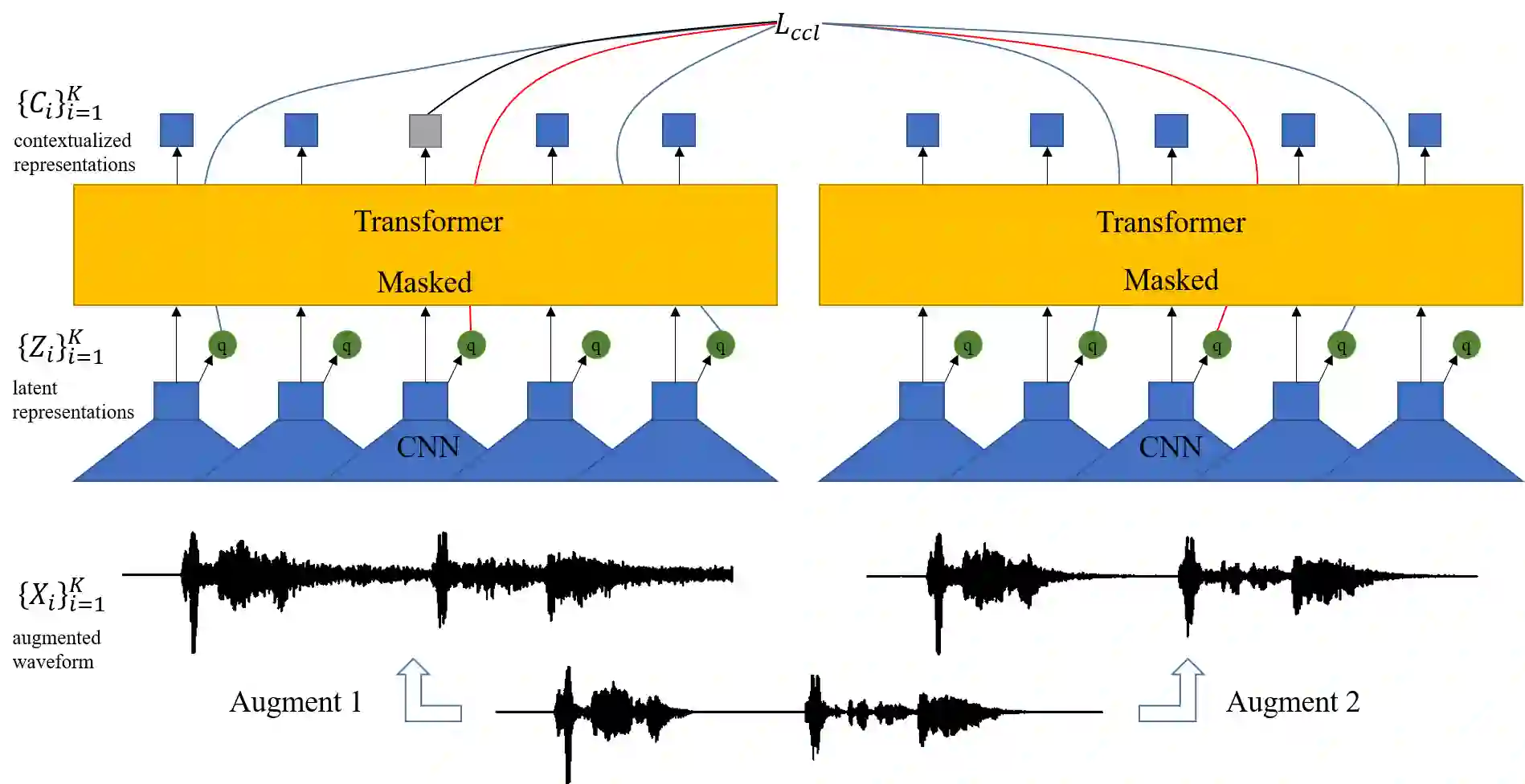 翻译:在自动语音识别(ASR)任务上,自我监督的声学预培训在自动语音识别(ASR)任务上取得了惊人的成果。大多数成功的声学预培训方法都采用对比性学习方法,通过区分不同时间步骤来学习声学表达方式,忽略了扬声器和环境的稳健性。因此,在微调过程中,预先培训的模式在满足外部数据时可能表现不佳。在本信中,我们设计了一种新的一致性对比学习方法(CCL),在声学预培训中使用了数据增强功能。在原始音频上应用了不同的增强功能,然后将增强的音频输入到编码器中。编码器不仅应对比一个音频中的表达方式,而且还应最大限度地测量不同扩音频音频的表达方式。这样,预先培训的模式可以学习一种与文本相关的表达方法,该方法与演讲者或环境的改变更加有力。通过在音频前培训前使用CCL方法,在原始音频和扩音频的音频中都应用了不同的增强功能。在原有数据和外部数据中可以取得更好的结果。特别是用于压外位的15度数据。