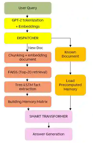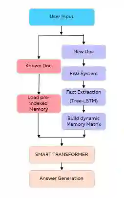 翻译:工程手册(EM)用户发现阅读EM存在困难,因为其篇幅冗长、格式密集,包含书面文档、分步操作流程以及工程设备的标准参数列表。现成的Transformer模型(尤其是紧凑型)将此类材料视为扁平的令牌流进行处理。这种方法会导致模型产生自信但错误的数值答案,并迫使其低效地记忆分散的事实。SMART(结构化记忆与推理Transformer)为此问题提供了一种创新且实用的解决方案。SMART采用分层处理架构,其核心基于三大功能模块:(1)语法感知的事实提取器(语法学家)——基于Tree LSTM从EM语句中提取主谓宾关系的事实三元组;(2)紧凑型索引记忆模块——通过记忆增强神经网络(MANN)将这些理性主谓宾关系索引为384维向量,并与信息来源关联;(3)6层Transformer模块——学习将检索到的事实融合至生成响应中。整个SMART模型仅包含45.51M参数,较GPT-2(124M)减少64%,较BERT(133M)减少69%,同时其准确率比GPT-2提升21.3%,表明SMART能以最低计算成本实现更优的数据拟合。SMART采用双模式推理机制:针对已知文档的索引快速路径(亚秒级响应)和针对新上传文档的索引动态路径(通过检索增强生成技术辅助,采用FAISS Top 20检索结果并设置64槽记忆截断)。在实际部署中,该框架相较于同类小型Transformer模型,能够生成更具支撑性的结果并显著减少幻觉现象。