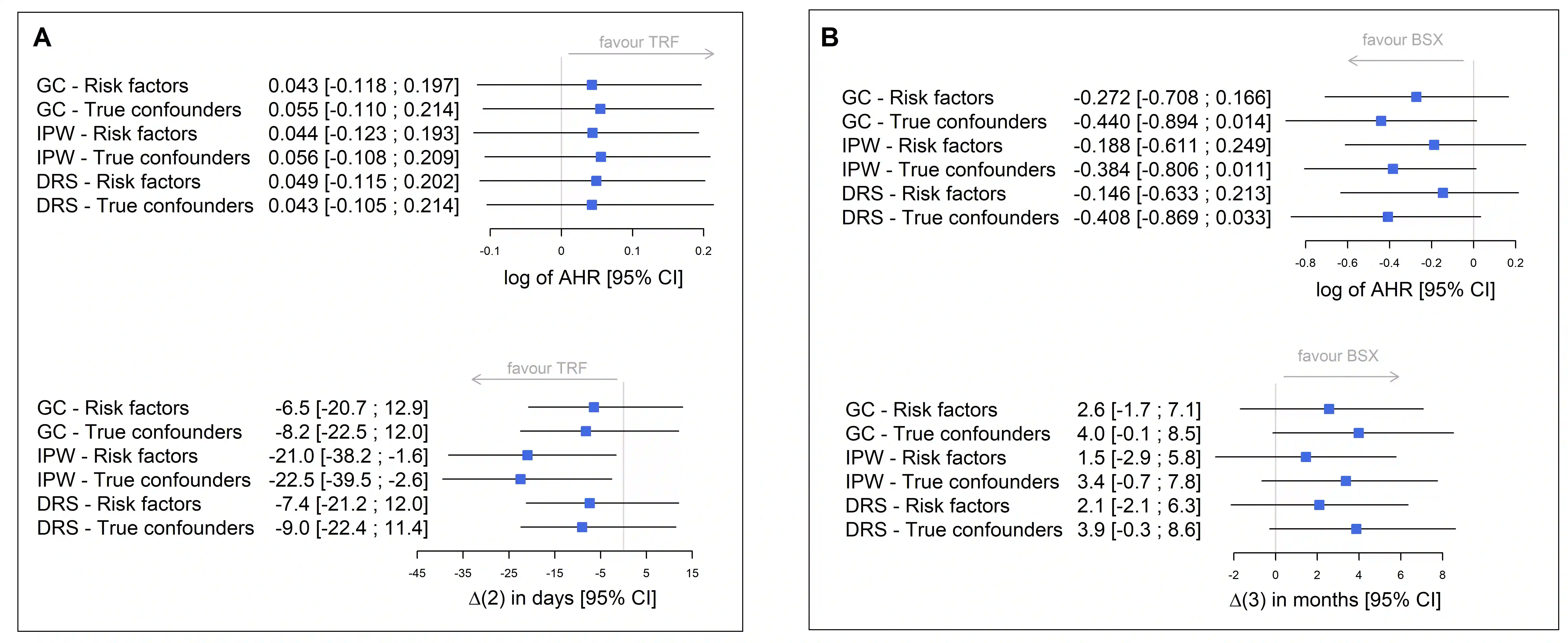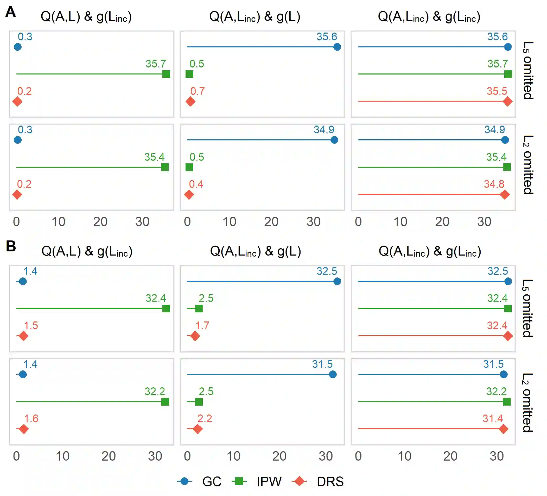 翻译:在时间到活动的环境中,G-计算和双倍强势估计基于离散时间数据,但许多生物过程随着时间的推移而不断演变。在本文中,我们将G-计算和双倍强的标准化程序推广到一个连续的时间范围内。我们用模拟研究将其性能与众所周知的反概率加权估计危险比率和有限平均生存时间差异的估计标准进行比较。在正确的模型规格下,所有方法都是不带偏见的,但G-计算和双倍强的标准化比反概率加权效率更高。我们还分析了两个真实世界数据集,以说明这些方法的实际执行情况。我们更新了R组合的RISCA,以便利这些方法的使用和传播。