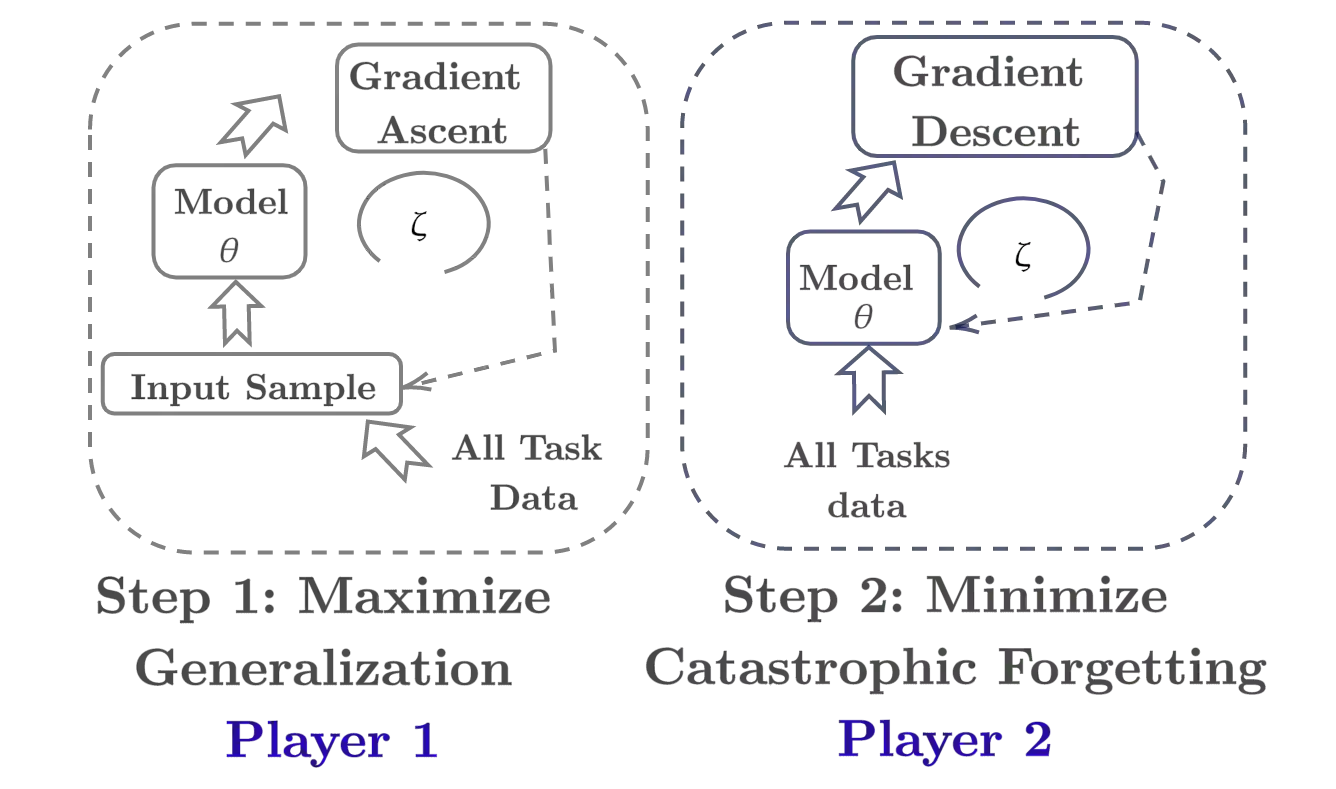 翻译:我们通过动态的编程和模型将灾难性的遗忘和笼统化之间的权衡作为双人相继游戏来制定持续学习问题。在这种方法中,玩家1因缺乏概括化而最大限度地增加成本,而玩家2则尽量减少灾难性遗忘的代价。我们从理论上表明,每个任务都存在两个玩家之间的平衡点,而且这个点是稳定的(一旦达到平衡,两个玩家就停留在平衡点 ) 。 其次,我们引入平衡的连续学习(BCL ), 目的是在概括化和遗忘之间实现平衡, 并用经验证明, BCL 与艺术水平相当或更好。