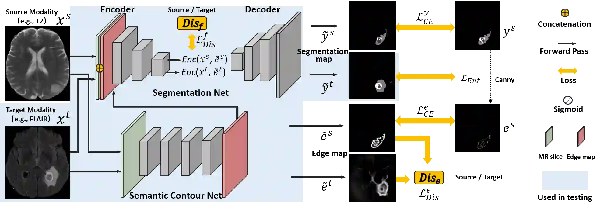 翻译:~ 为此,在这项工作中,我们提议利用低层边缘信息促进适应,将其作为一项先质任务,与语义分离相比,该先导任务具有小的跨域差距。 ~ 精确的轮廓随后提供了空间信息,以指导语义适应。更具体地说,我们提议了一个多任务框架,以学习与语义分离适应网络的连接适应网络,同时学习语义分离适应网络,这一网络既采用磁共振成像(MRI)切片,又使用最初的边缘地图作为投入。~ 这两个网络与源域标签共同培训,为跨域校正对进行特征和边缘地图水平对抗性学习。此外,将自体机能最小化纳入进来,以进一步加强语义分离性能。我们评估了我们在BRATS2018数据库中用于脑肿瘤跨模式分离的框架,与相互竞争的方法相比,显示了我们的方法的有效性和优越性。