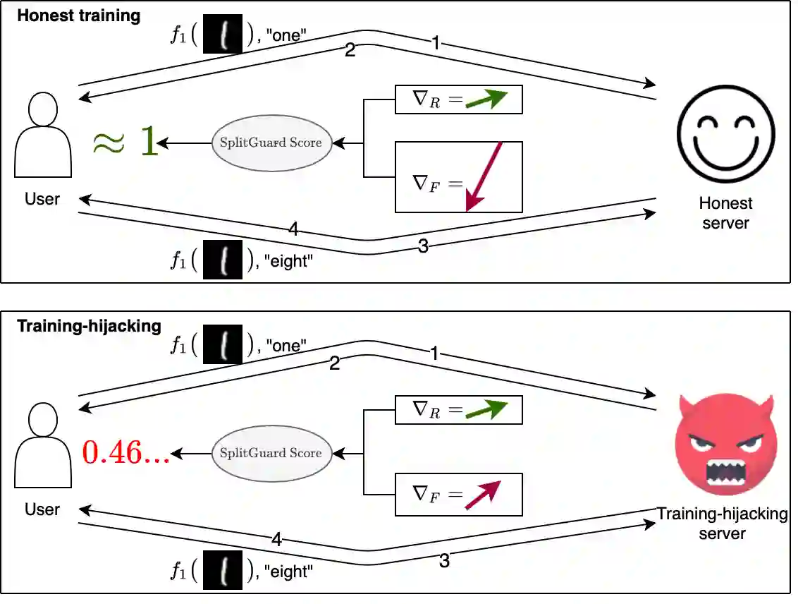 翻译:最近有人提议采用分散式深层次学习框架,如分解学习,以使一组参与者能够在不分享原始数据的情况下合作训练深神经网络。 分解学习特别通过将一个神经网络在客户和服务器之间分割,使客户计算最初的一组层次,而服务器则计算其余部分。 但是,这一方法为恶意服务器试图偷窃客户的私人数据引入了独特的攻击矢量:服务器可以引导客户模式学习自己选择的任务。 有了已经提出的一个具体例子,这种劫持训练攻击对分解学习客户的数据隐私构成了重大风险。 我们提议SplitGuard, 使用这一方法,让一个分解学习客户能够发现它是否被劫持训练攻击的目标。 我们实验性地评估其有效性,并详细讨论与使用它有关的各点。 我们的结论是,SplitGuard能够有效地探测到劫持训练攻击,同时尽量减少对手所收集的信息数量。