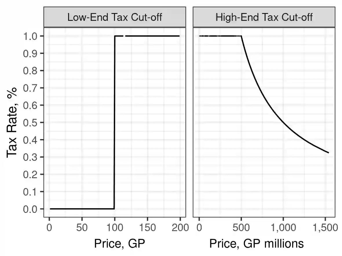 翻译:大规模多玩者在线角色扮演游戏往往包含复杂的游戏经济。许多重要的现实世界经济现象,如通货膨胀、经济增长和商业周期,也存在于这些虚拟经济中。现实世界和虚拟经济之间的一个重大区别是决策者,在这个情况下是游戏开发者,容易和频繁地带来经济冲击。这些经济冲击,通常通过游戏更新或通过社区渠道发出信号来实施,为研究经济干预对市场的影响提供了肥沃的土壤。在这项工作中,我们研究了游戏中经济市场干预的影响,即交易税和产品集市,在RuneScape的老学院。我们发现,税收并没有有意义地影响税收边界上物品的交易量,而该商品汇又助长了奢侈品价格的膨胀,同时又没有减少贸易量。此外,我们发现有证据表明,非法黄金交易市场相对不受所实施的市场干预的影响。我们的调查结果不仅对虚拟经济市场干预的效果,而且也对现实世界市场市场的影响产生了有益的洞察力。