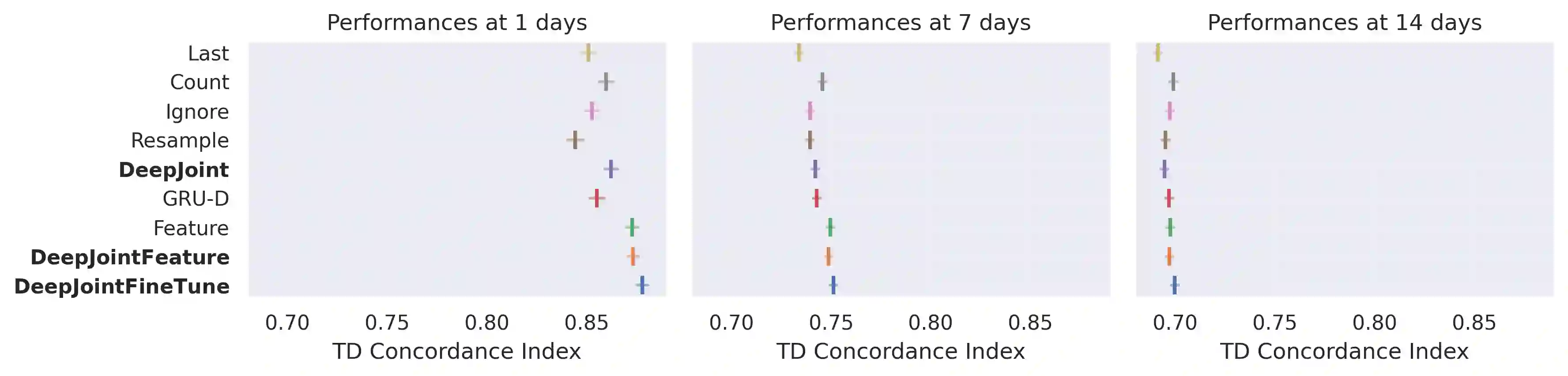 翻译:医学观察数据是病人和保健系统之间复杂互动的结果。抽样过程往往极不规律,本身就是一个信息过程。当使用这些数据来开发预测模型时,这种现象往往被忽视,导致在做法演变时模型的性能和普遍性低于最佳水平。我们建议建立一个多任务经常性神经网络,在生存结果的同时,以临床存在的三个层面 -- -- 即纵向、观察间和缺失过程 -- -- 为模型。在利用MIMIMIC III实验室试验进行的预测任务中,对这三个过程进行明确的模拟表明,与最先进的预测模型(一天的C-索引:0.878)相比,其性能有所改善。更重要的是,拟议的方法更能改变临床存在环境,这表现在周日和周末接受的病人之间的性能比较中。这一分析表明,必须研究和利用临床存在来改进性能和创造更可移动的临床模型。