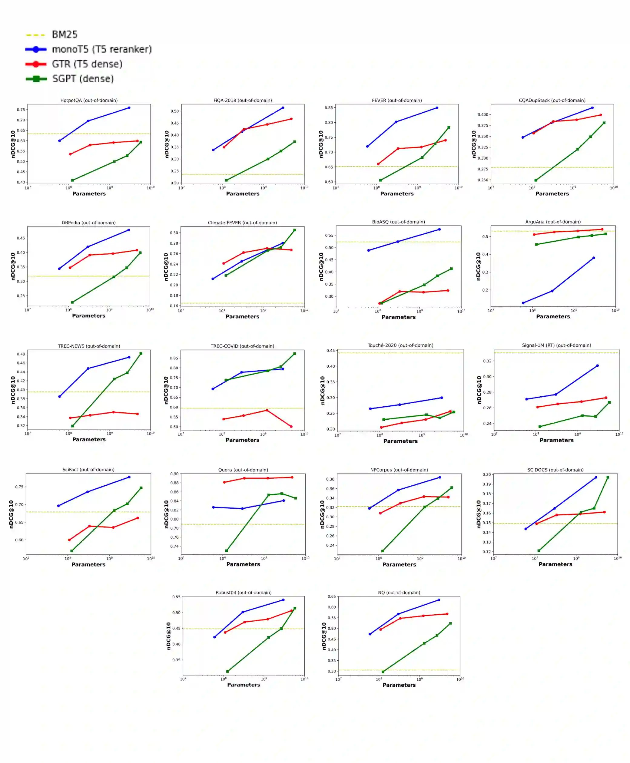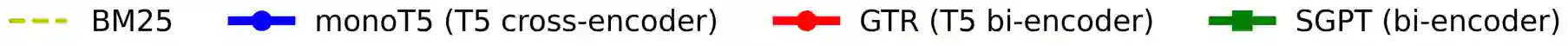 翻译:在这项工作中,我们研究了这两类建筑在一系列参数上的普及能力,这两类建筑的普及能力,这些参数既取决于内部和外部的假设情况。我们发现,跨编码者的参数和早期查询文档互动数量在检索模型的普及能力中起着重要作用。我们的实验表明,日益扩大的模型规模导致在现场测试组中取得边际收益,但在微调期间从未看到过的新领域获得的更大收益。此外,我们还表明,跨编码器在多项任务中基本上优于类似规模的双编码器。在BEIR基准中,我们最大的交叉编码超过一个最先进的双编码器,平均超过4个点。最后,我们表明,使用双编码器作为第一阶段检索器,与像BM25这样的较简单的检索器相比,在外部任务上没有取得任何收益。该代码可在 https://githrub.comm/guilling https://gistrireireub.