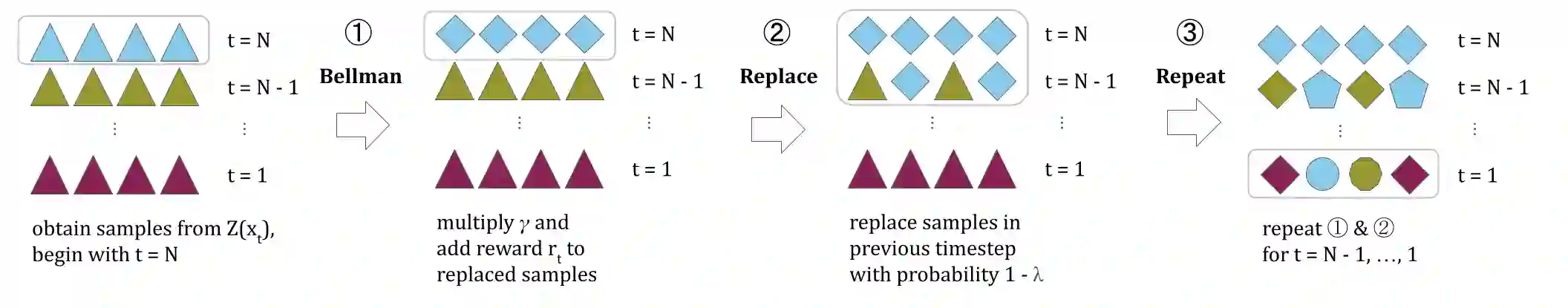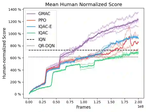 翻译:在本文中,我们设计了一个关于行为者-批评的分布框架,作为分配不稳定、行动类型限制以及将样本和统计数据混为一谈的一种解决办法。我们提出了一种新的方法,以最大限度地减少从一种新型的样样替换算法中生成的多步Bellman目标分布的Cram\'er距离,代之以SR($\lambda$),该算法在多个Bellman操作中学习正确的价值分布。与Gausian Mixture模型的值分配参数进一步提高了该方法(我们称之为GMAC)的效率和性能。我们从经验上表明,GMAC在使用Arcade学习环境(ALE)和PyBullet环境的离散和连续行动空间中,都掌握了价值分配的正确代表性,并改进了低计算成本的常规行为者-批评方法的性能。