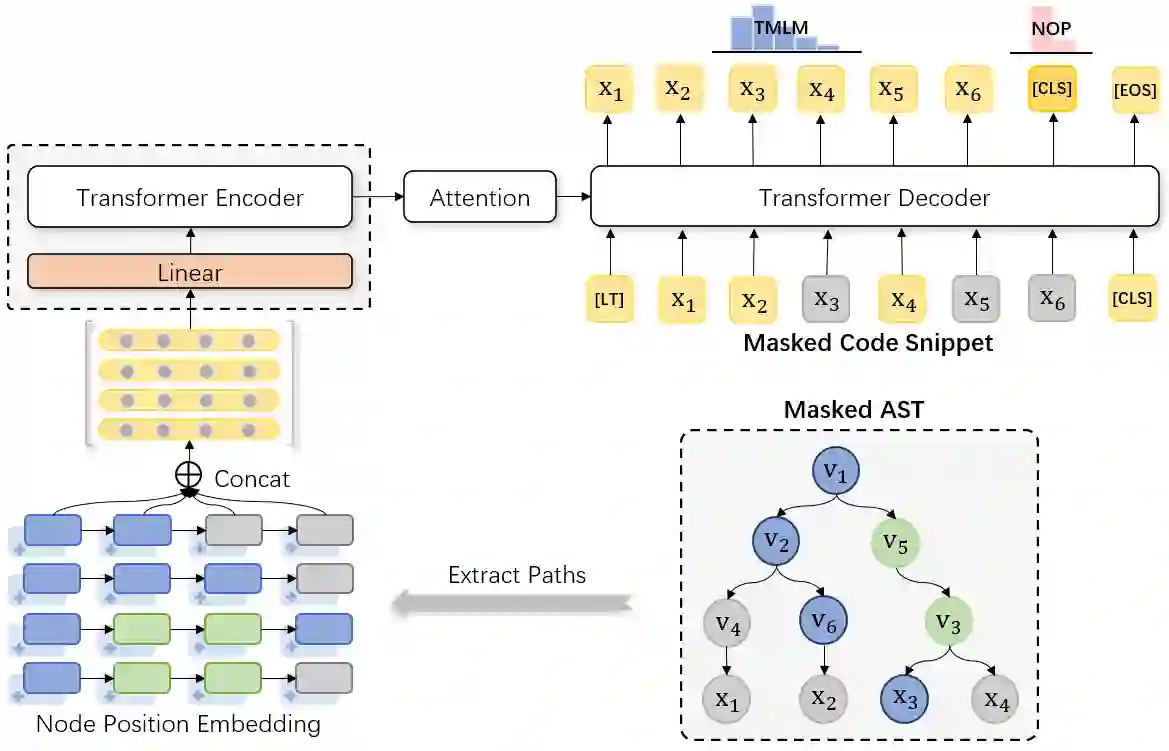 翻译:源代码可以根据定义的语法规则对抽象的语法树( AST) 进行分解。 但是, 在培训前, 很少考虑将树结构纳入学习过程。 在本文中, 我们展示了一个基于树的预培训模型, 用于改进基于语言的生成任务。 要使用树结构, 树BERT 代表与代码相对应的AST作为一套组成路径, 并引入节点嵌入。 该模型由树蒙面语言模型( TMLM) 和节点顺序预测( NOP) 以混合目标来培训。 TMLM 使用一种根据树特性设计的新颖的遮罩战略来帮助模型理解 AST, 并推断缺少的语义 。 与 NOP 相比, 树BERT 提取了与代码对应的合成结构, 学习了 AST 中节点的顺序限制。 我们事先培训过的树BERT, 有关包含多种编程语言的数据集。 关于代码和代码拼写和代码文档任务, TreBERT 超越了其他预先训练过的模型,, 将这些模型转移到了 。