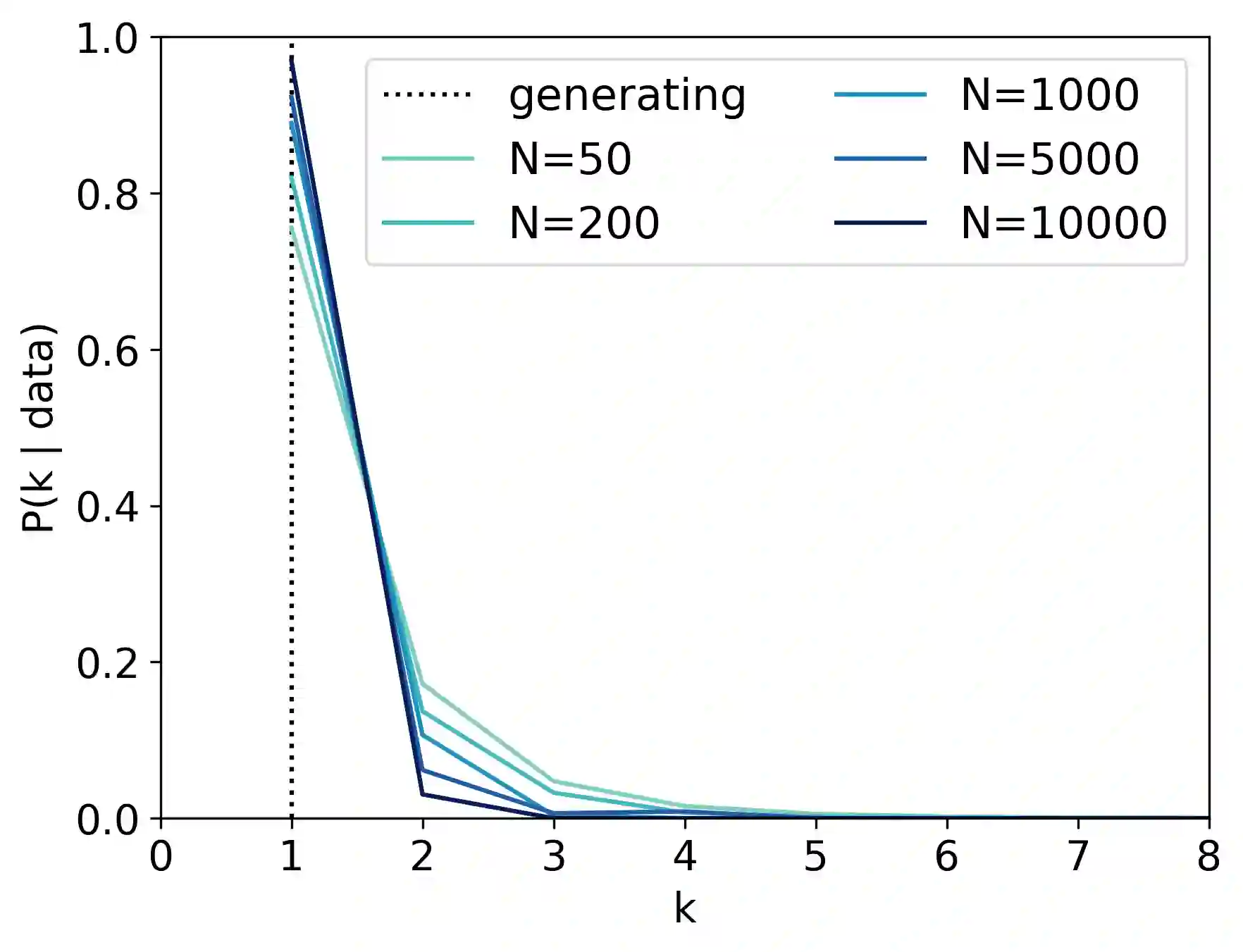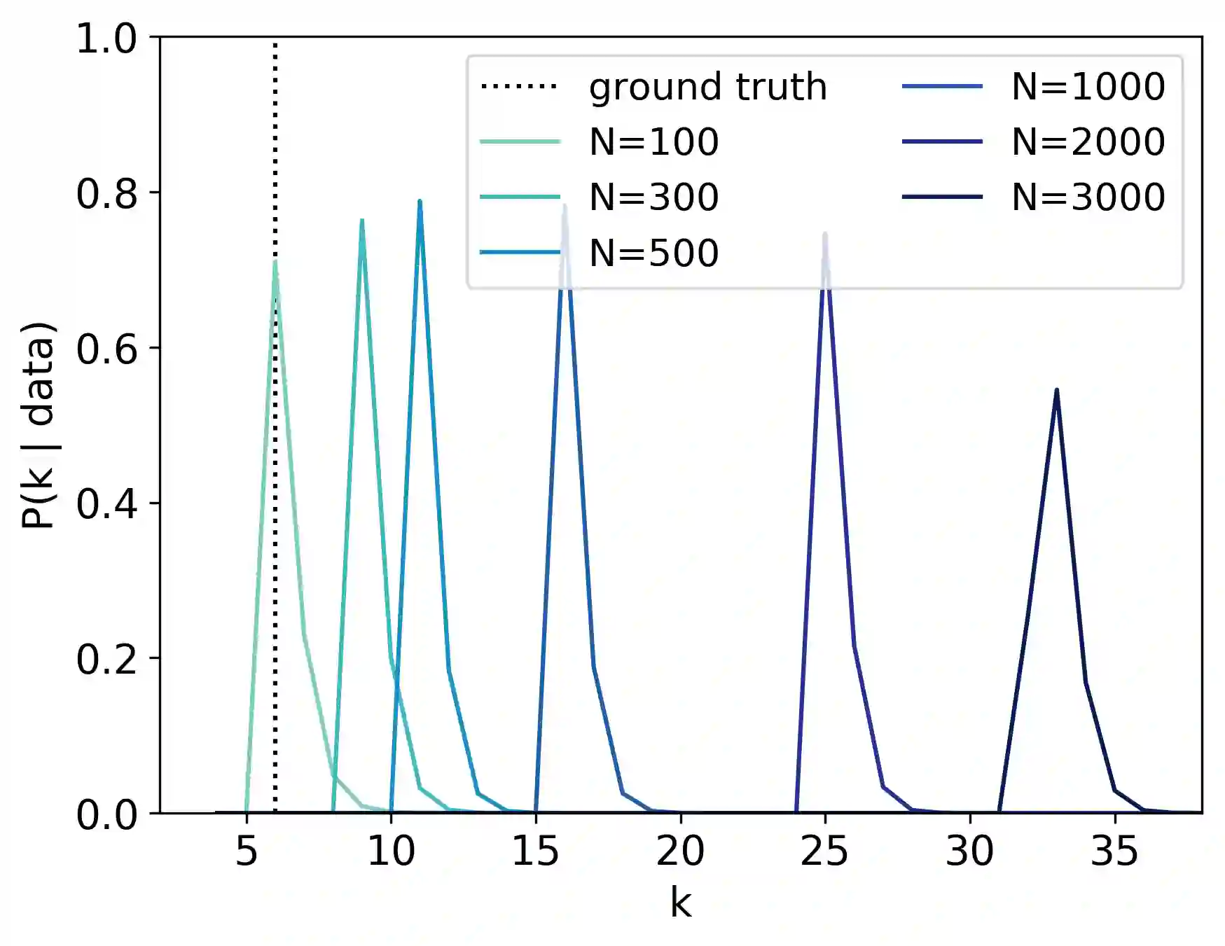 翻译:科学家和工程师往往有兴趣了解数据集中存在的亚群数(或组成部分)的数量。一个共同的建议是使用一个具有先验成分数量的有限混合模型(FMM),先验的成分数量。过去的工作表明,由此得出的FMM的成分计数后背体是一致的;也就是说,后成体集中在真实的成分上,产生大量成分。但一致性要求假设组成部分的可能性是完全具体的,在实践中是不切实际的。在本文中,我们通过证明在即使是最微小的模型中,FMM的成分计数后表层差异:在无限数据限度内,任何特定有限成分数的后验概率会达到0。与直觉相反,后成体密度的连贯性并不足以确立这一结果。我们开发出比非典型文献中常见的更现实和容易核对的新的充分条件。我们举例说明了我们关于模拟和真实数据理论的实际后果。
