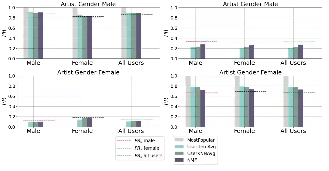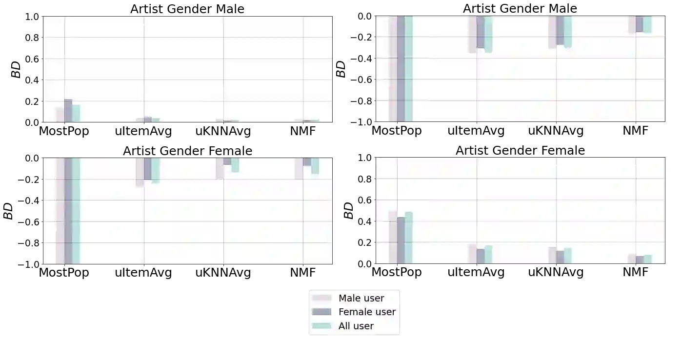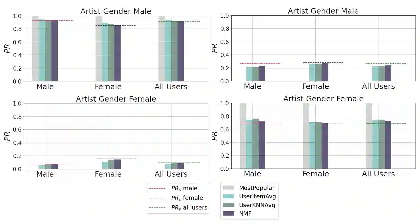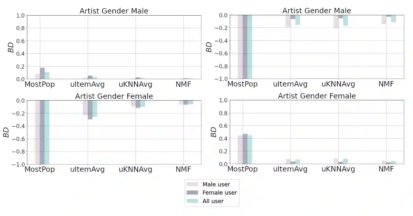 翻译:音乐建议系统(mRS)的设计旨在向用户提供个人化和有意义的项目(如歌曲、播放列表或艺术家)建议,从而反映和进一步补充个人用户的特定音乐偏好。虽然在评价最低要求文献中的建议方面广泛采用了准确度指标,但从其他面向影响的观点(包括其歧视可能性)评估用户的项目效用,从其他面向影响的观点(包括其歧视潜力)来看,仍然是音乐领域的一种新颖的评价做法。在这项工作中,我们把注意力集中在一个具体现象上,我们想估计最低要求是否会加剧其影响:\ textit{性别偏差}。我们的工作是一项探索性研究,分析通常部署的艺术合作过滤算法状态在多大程度上可能进一步增加或减少艺术家的性别偏差。在流行音乐流平台上,%,Last.fm.为了评估CFF提出的群体偏差,我们最近在两个监听事件数据集(LFM-1b数据集和早先建造的Celma数据集)上提出了一种偏差的衡量标准。我们的工作追踪差异的原因,在用户分配和生成性别偏差后,可以突出这种偏差的影响。