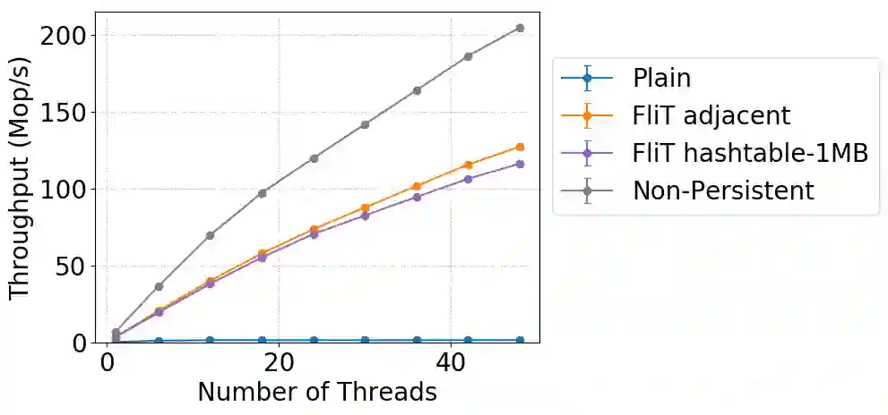 翻译:非挥发性随机存取存储( NRRAM) 提供与 DRAM 相近的速度的字节可处理的耐久性。 然而, 缓存自动迁移可以随着缓存状态的波动而重新排序更新记忆, 在系统崩溃时可能会留下不一致性的内存。 平流和栅栏指示可以用于强制在系统崩溃中排序, 但成本很高 。 这促使大量研究如何为 NURRAM 编写正确和有效的持久程序。 在本文中, 我们展示了一个有助于写入高效持久性代码的 C++ 库FliT 。 使用图书馆的默认模式, 使得任何可线性的数据结构可以与代码最小的修改相容。 FliT 避免许多多余的冲刷指令, 使用新算法来跟踪脏取脏取的缓存行踪迹行踪。 FliT 库库库的运行方式总是通过默认性数据结构来显示, 我们通过 Ftimeal 格式的操作将一个数据库的运行方式和 Ftreal 格式用于一个不同的数据结构。