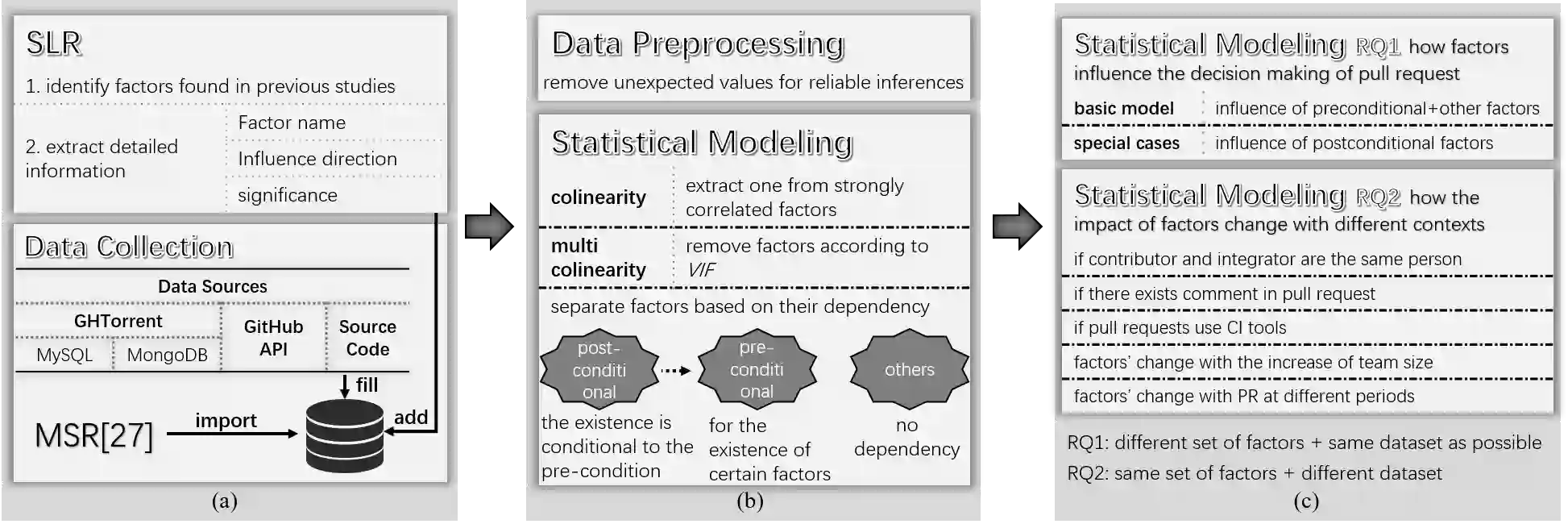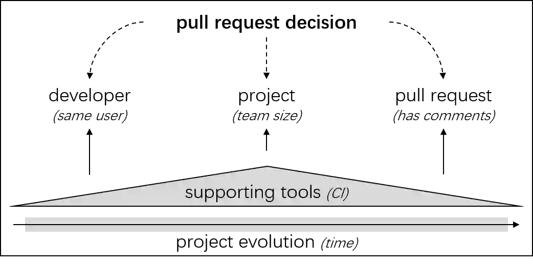 翻译:背景:基于拉动的发展模式在开放源码中广泛使用,引导分布式软件开发的趋势。一个引起极大关注的方面是,对拉动请求决定的研究----找出解释因素。目标:本研究基于对拉动请求决定进行长达十年的长期研究,以解释这一决定。我们实证地调查各种因素如何影响拉动请求决定以及改变因素影响因素影响的情景。方法:我们通过系统的文献审查确定影响GitHub的拉动请求决定的因素,并通过采矿档案数据推断出这些因素。我们从11,230个关于GitHub的项目中共收集了3,347,937个有95个特点的拉动请求。我们利用这一数据,探索各种因素之间的关系,并建立混合效应后勤回归模型,以实证方式解释拉动请求决定。结果:我们的研究显示,少数因素解释拉动请求决定,与提交者相同,或与提交者不同,作为最重要的因素。我们还注意到,某些因素只有在特殊情况下才很重要,例如,在使用连续整合时,失败率对于拉动决定很重要。