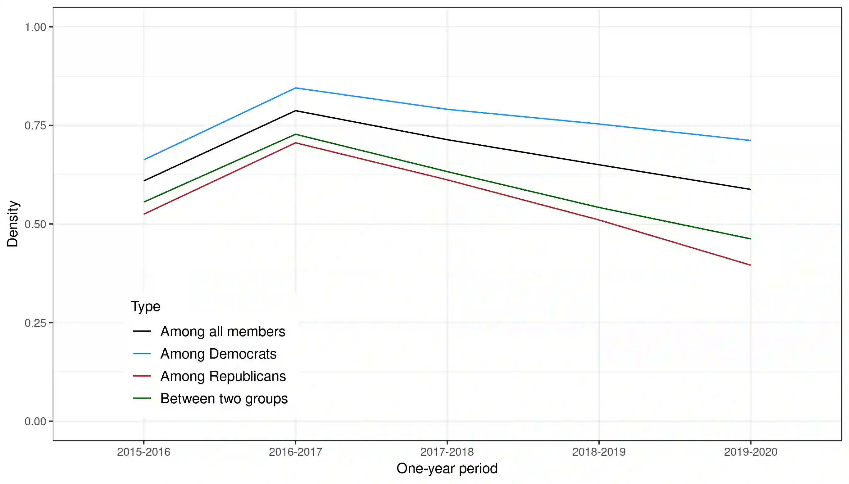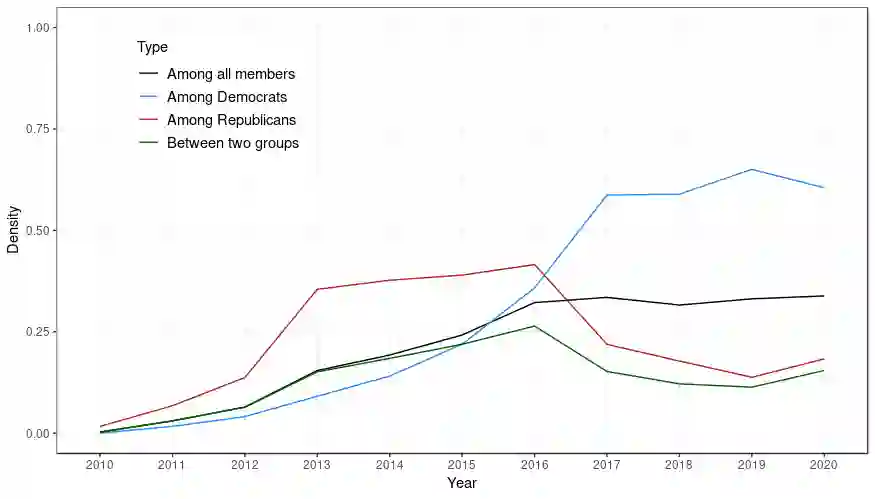 翻译:我们开发了一个广泛应用的潜潜潜空间网络,其中吸引者(CLSNA)模型,节点代表了假定处于未知潜伏空间的个别社会行为者,边缘代表了行为者之间特定互动的存在,吸引者又在潜伏层面添加了吸引者,以捕捉有吸引力和令人厌恶的力量的概念。模型使用贝叶斯推论来估算。我们应用CLSNA模型来应对情感两极化问题,期望共和党和民主党与自己的政党合作、支持和互动,并与对方保持距离、反弹和互动较少。我们利用社交媒体平台Twitter和Reddite这两个不同的纵向社会网络,我们调查政治精英和公众之间正面(诱人)和负面(反反向)影响的相对贡献。我们的目标是发现和量化两极化,特别是消除党派内部和党派之间的正反面力量。我们的分析证实,政治精英和公众之间存在情感两极分化,相互排斥和互动较少。我们利用两个社会媒体平台(Twitter和Reddidite)两个不同的纵向社会网络,我们分别调查政治精英和公众之间正面偏见在2015年整个研究的整个时期的民主精英和公众对民主领袖地位的影响中一直导致2015年的共和公众对的共和共和共和共和对民主集团的消极立场的统治地位的明显下降。