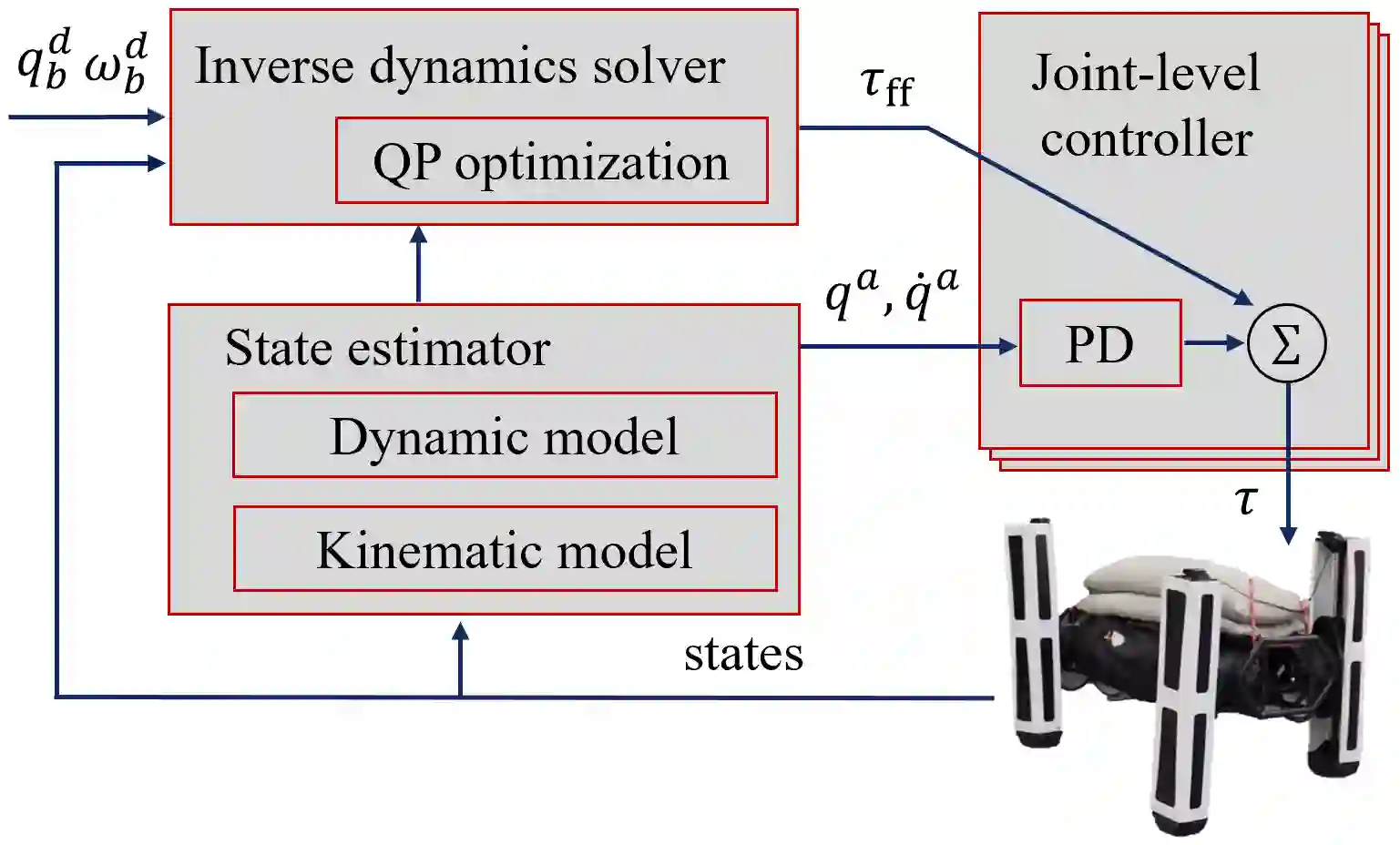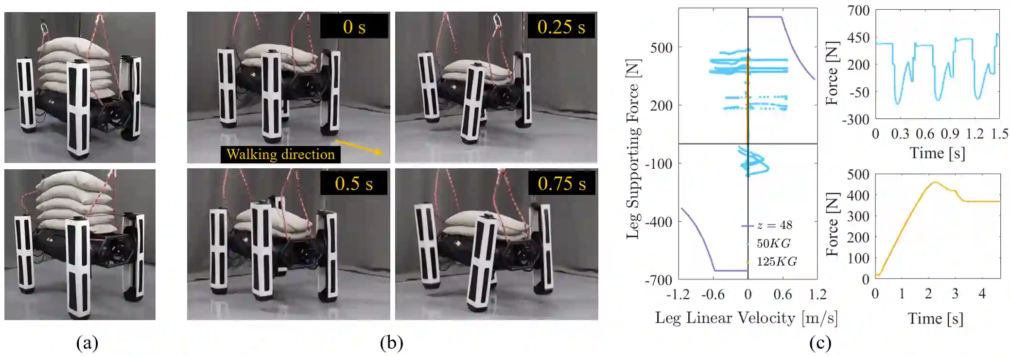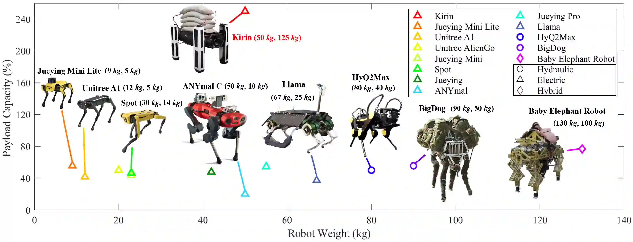 翻译:四重机器人是一个多功能的移动平台,具有运载高有效载荷的潜能。然而,大多数现有的四重机器人都以高可操作性、高动态和机动性移动设备为目标。尽管如此,有效载荷仍然是四重机器人不可或缺的能力。目前还深入探索了四重有效载荷能力高的机器人的设计。在本研究中,一个50千克电子起爆四重机器人基林被介绍来利用有效载荷的能力。基林是一个具有半直接驱动腿的特征。这一机制大大增强有效载荷的载荷能力。本研究提出了载荷载荷载荷四重机器人的若干设计原则,包括机械设计、动作参数选择和移动控制方法。理论分析表明,提升任务往往是现有机器人用清晰的膝盖接合的瓶颈。通过使用棱镜QDD腿,基林的载荷能力得到极大的增强。Kirin载荷载荷的载荷载荷能力大大增强载荷载荷载荷载荷运载能力。Kirin的载载荷载载力能力在初步试验中显示,其静态载有效载重为125。