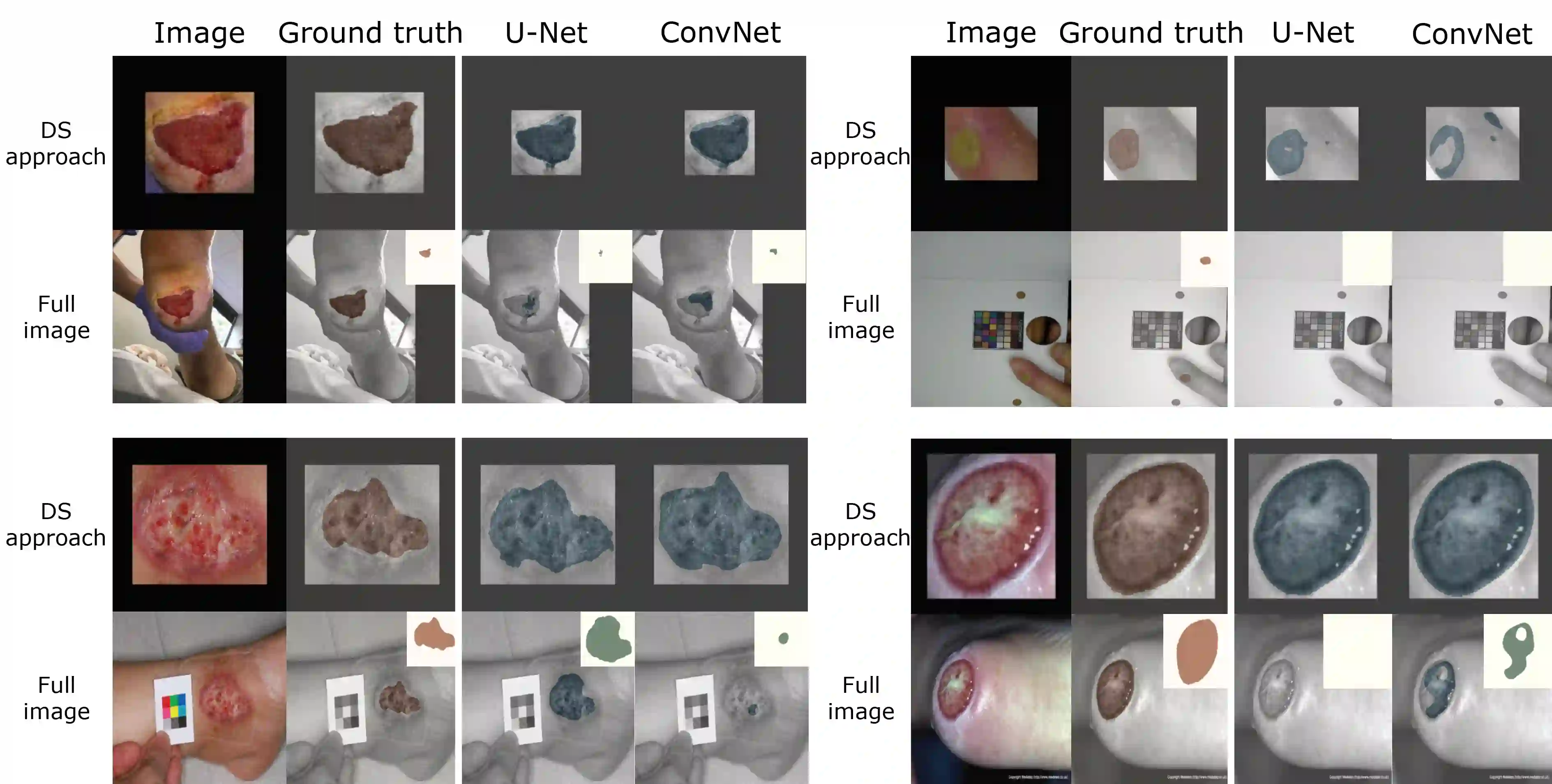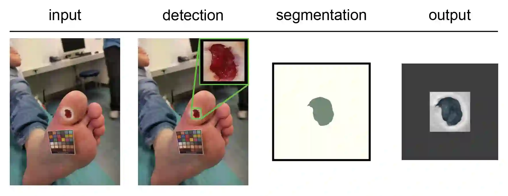 翻译:慢性伤口会严重影响生活质量。如果管理不当,它们会严重恶化。基于图像的伤口分析有助于通过量化与愈合有关的重要特征来客观地评估伤口状况。然而,伤口类型、图像背景构成和捕捉条件的高度异质性对伤口图像的稳健分解提出了挑战。我们展示了检测和分层(DS),这是一种深层学习方法,用高一般化能力制作伤口分解图。在我们的方法中,专门的深神经网络检测了伤口位置,将伤口从无信息化背景中分离出来,并计算了伤口分解图。我们使用一个带有糖尿病脚溃疡图像的数据集评估了这一方法。为了进一步测试,使用了4套来自不同身体位置的伤口类型更为多样的辅助独立数据集。马修斯的关联系数(MCC)从计算全图像的分解过程的0.29提高到0.85,同时将检测和分解结合起来。在测试从补充数据集中提取的伤口图像时,DS方法将中中值的中中值的内核分器从0.17提高到0.85。此外,DS方法使数据部分的分数培训得以进行低段。